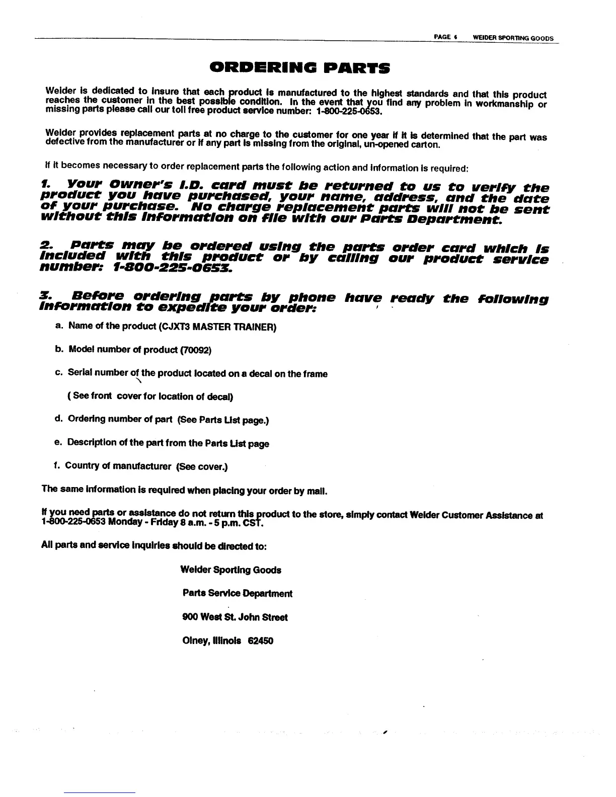 Weider Cjxt3 Cross Trainer Master - ORDERING PARTS