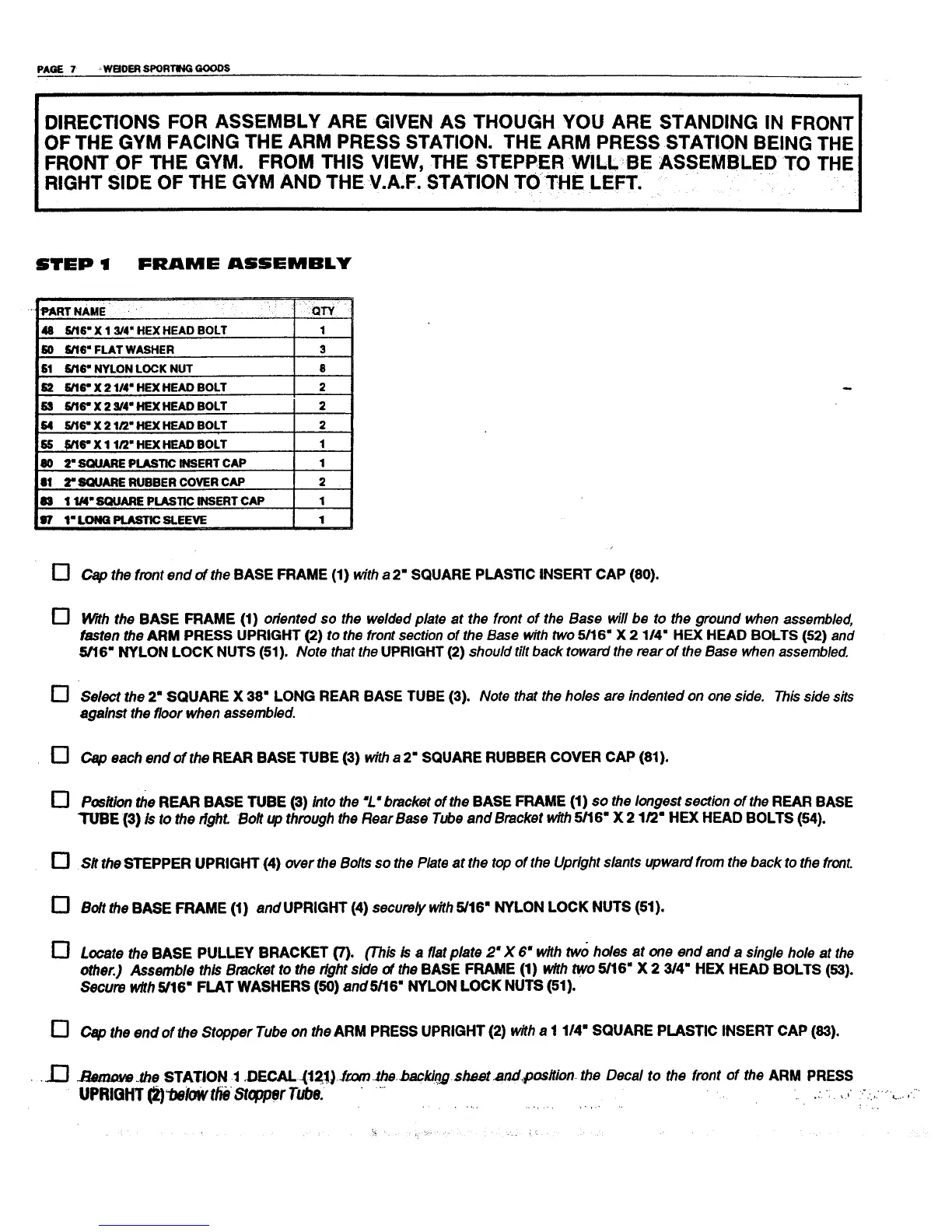 Weider Cjxt3 Cross Trainer Master - STEP 1 FRAME ASSEMBLY