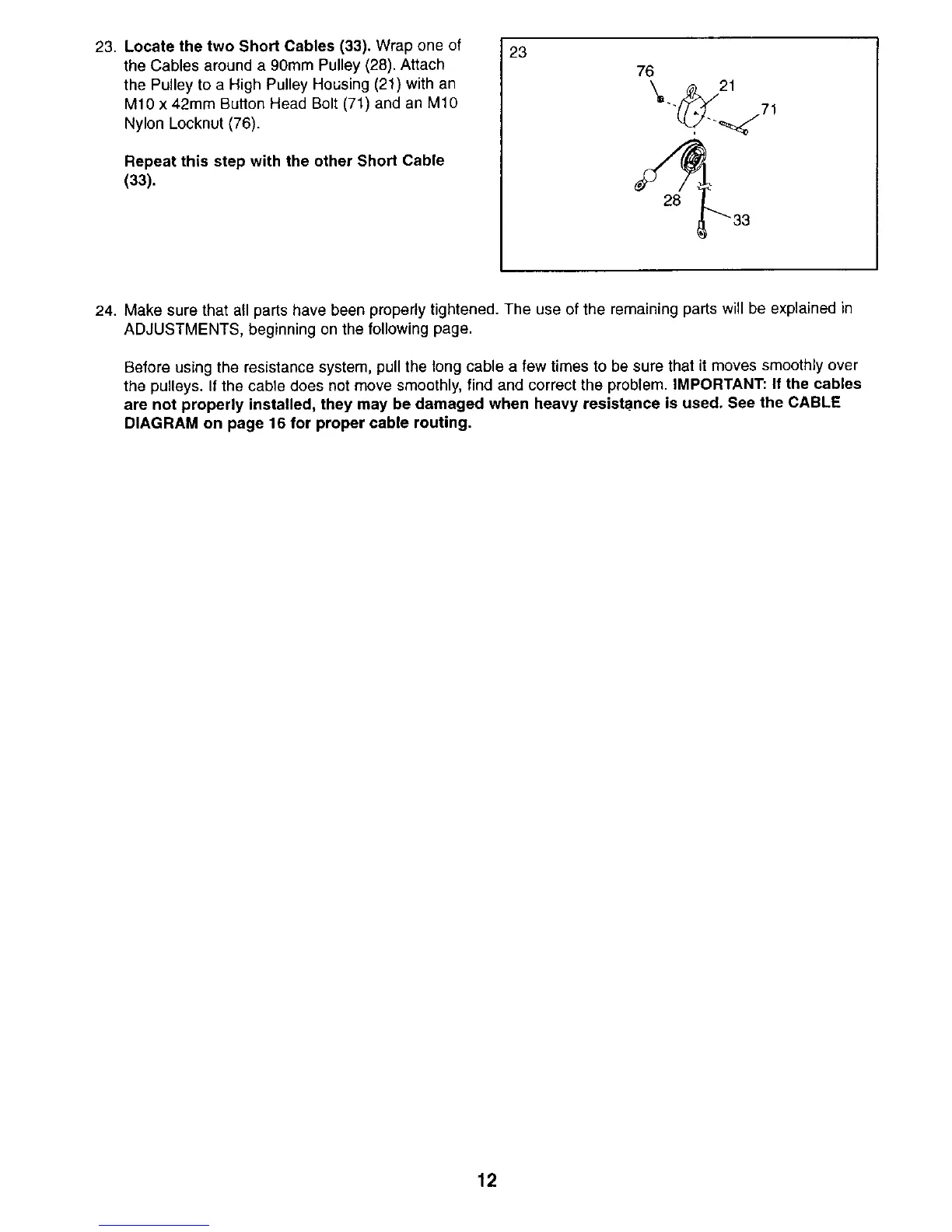 are not properly installed, they may be damaged when heavy resistance is used. See the CABLE