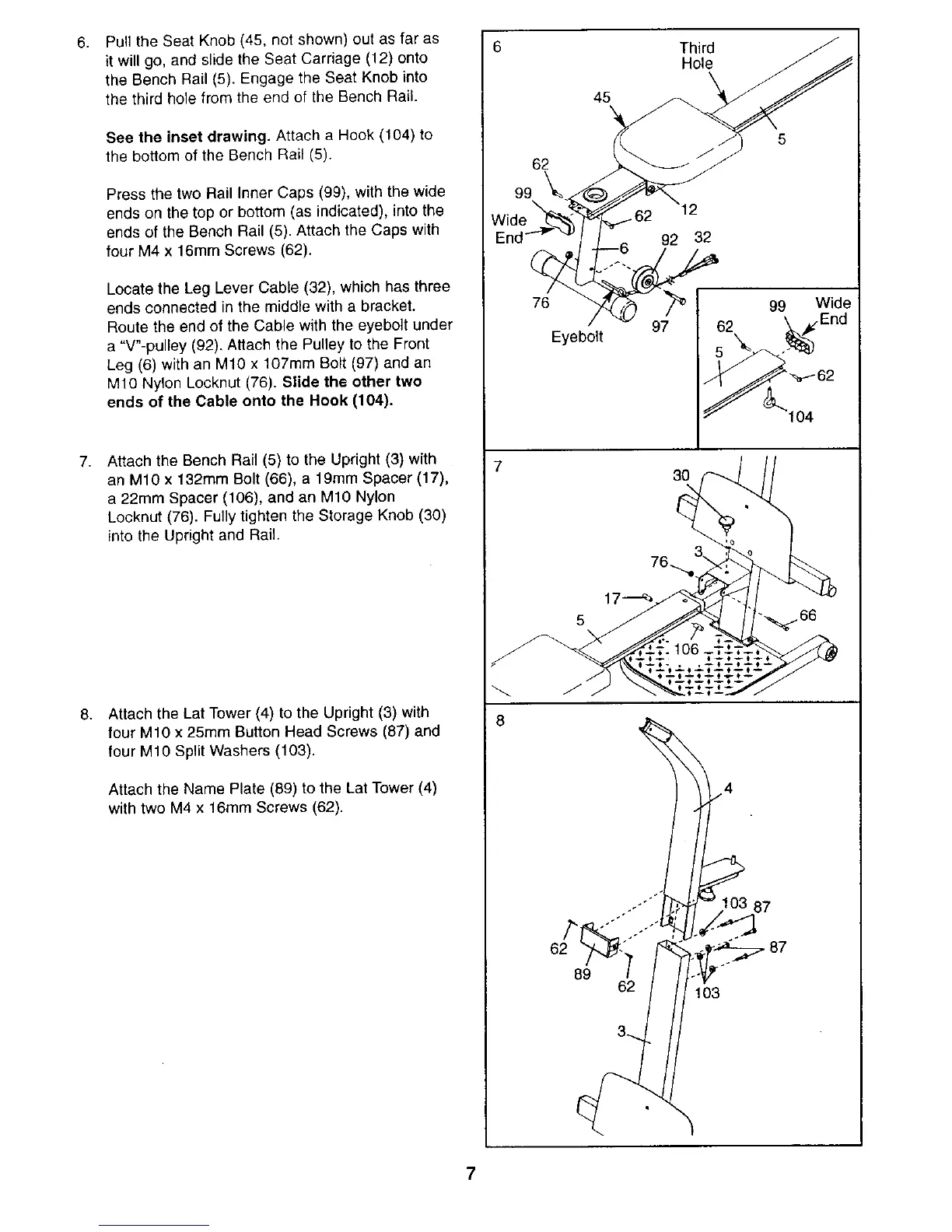 8. Attach the Lat Tower (4) to the Upright (3) with