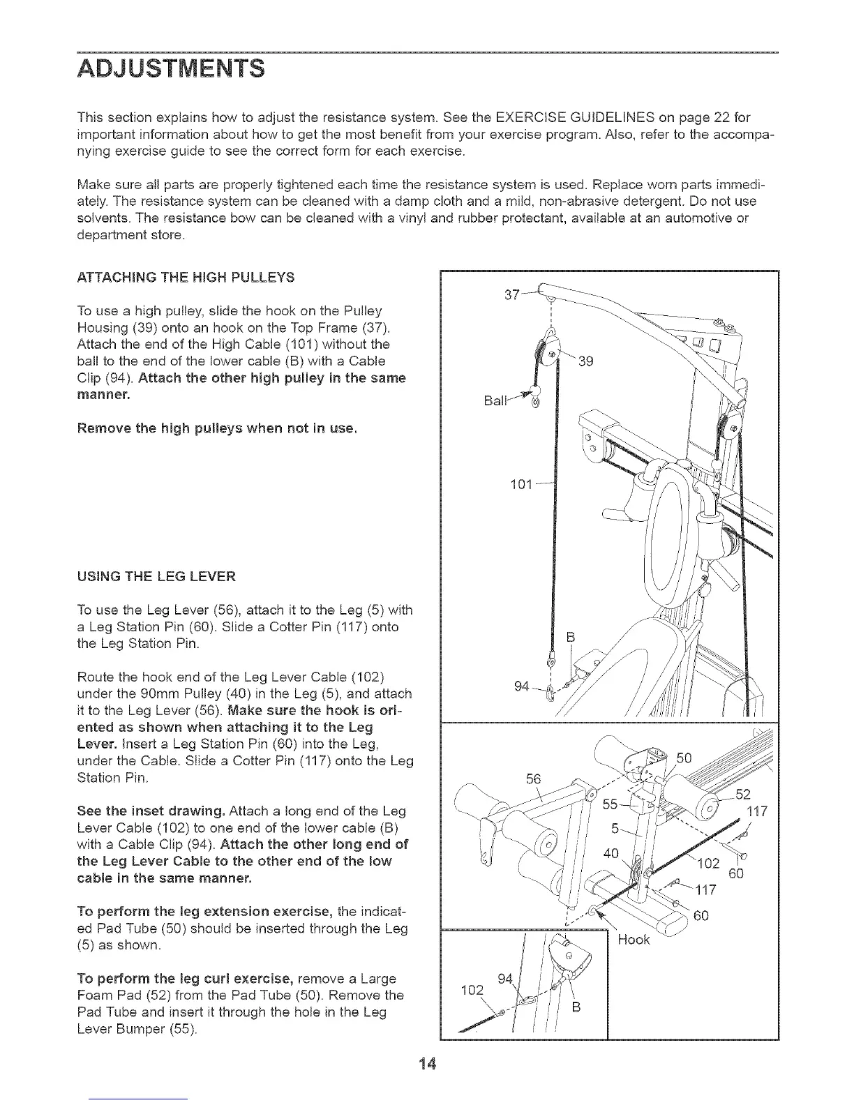 This section explains how to adjust the resistance system. See the EXERCISE GUIDELINES on page 22 for