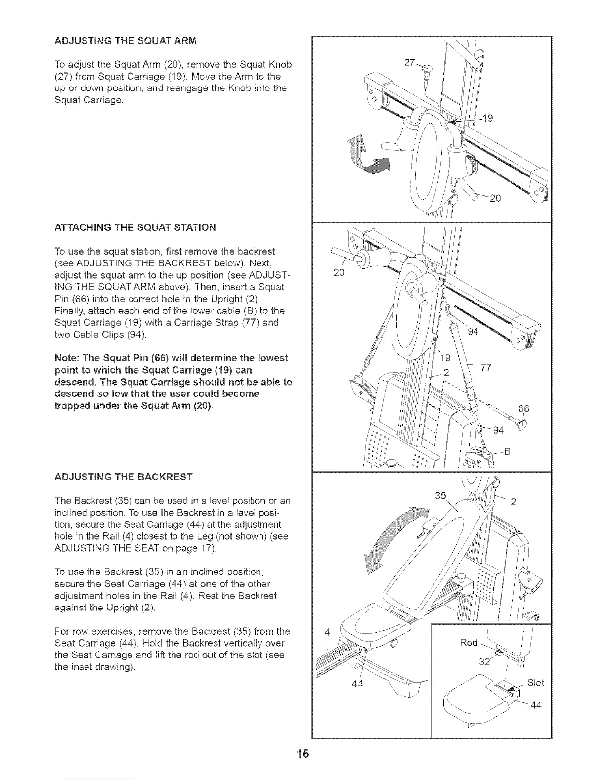 (27) from Squat Carriage (19). Move the Arm to the