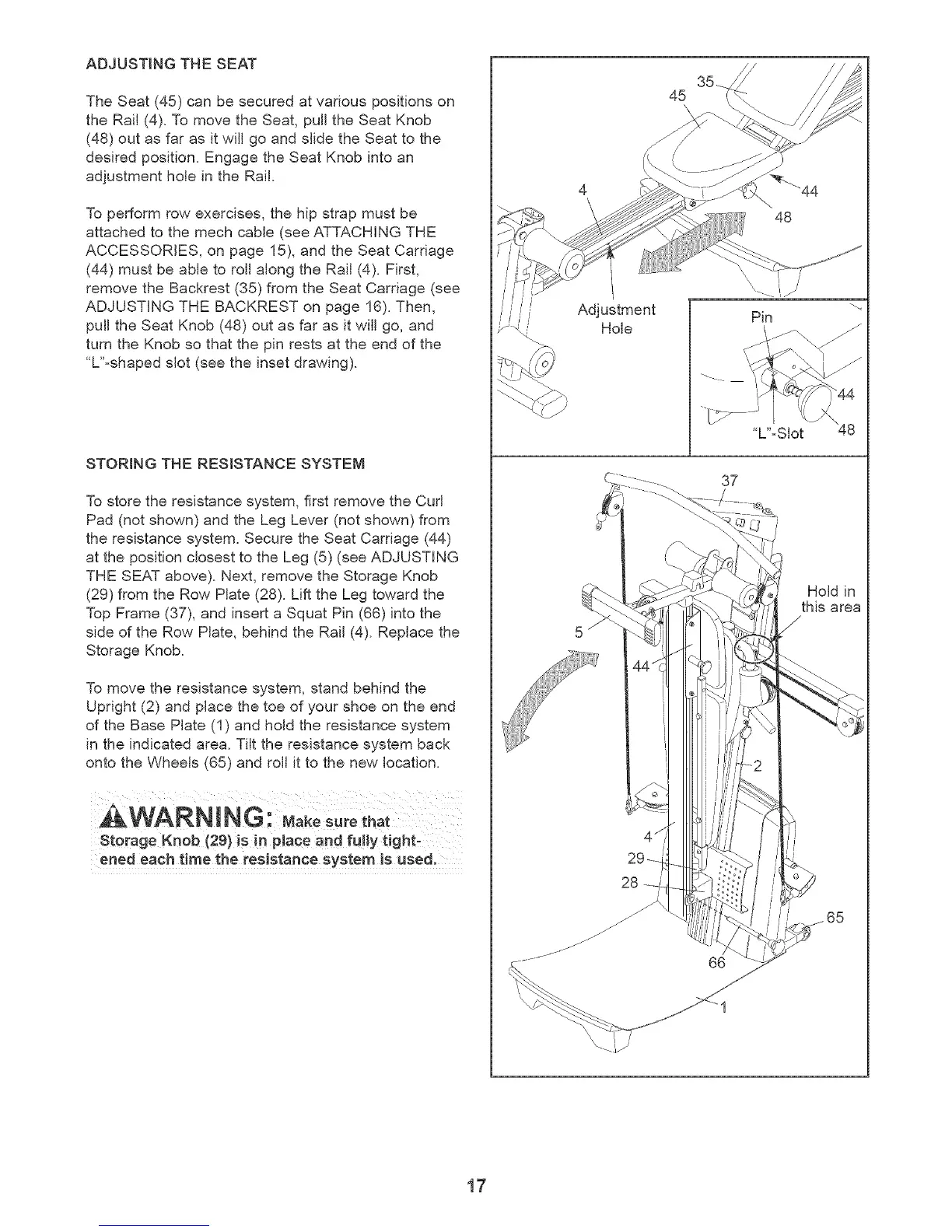 the resistance system. Secure the Seat Carriage (44)