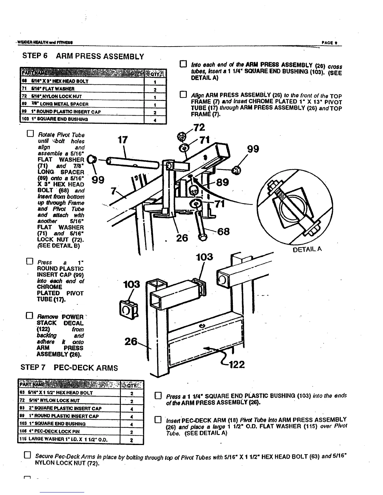 Weider E8000 - Assembly Steps 6 & 7; Step 6: Arm Press Assembly; Step 7: Pec-Deck Arms Assembly