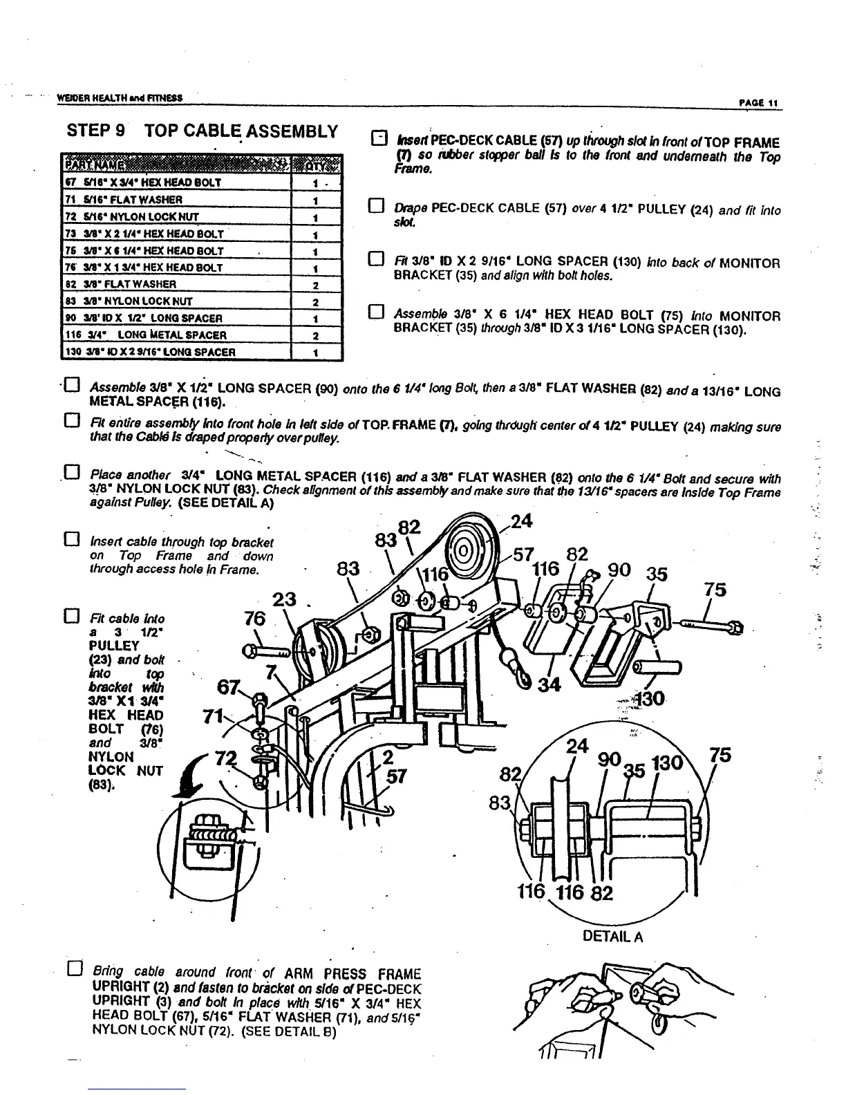 Weider E8000 - Step 9: Top Cable Assembly; Pec-Deck and Monitor Cable Routing; Pulley and Spacer Installation