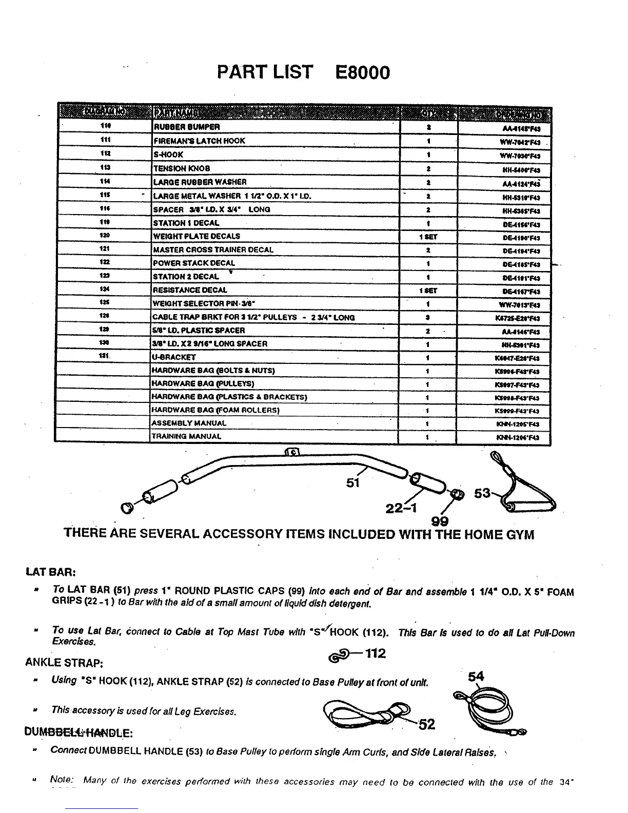 Weider E8000 - Component Identification; Accessory Items and Manuals