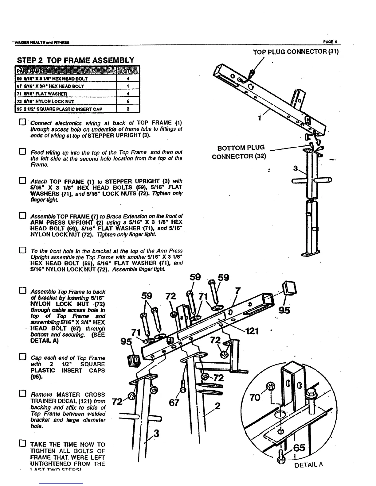 Weider E8000 - Step 2: Top Frame Assembly; Connecting Top Frame to Uprights; Applying Decals and Final Tightening