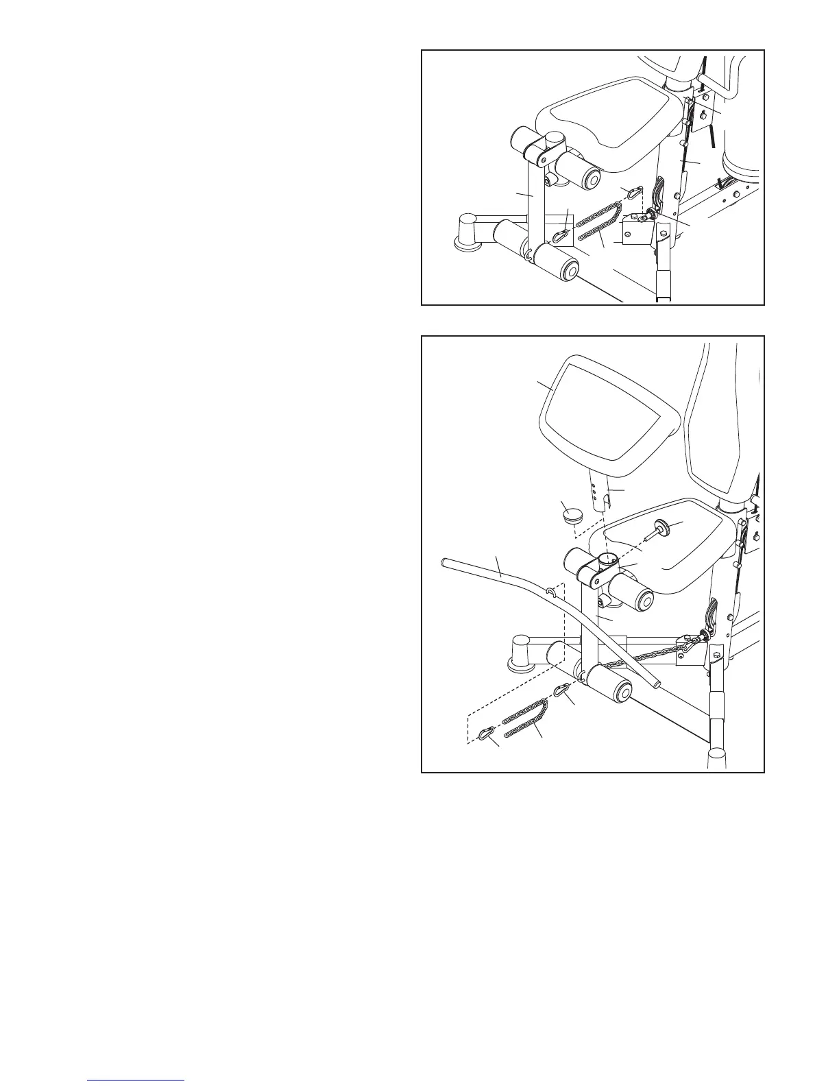 Next, attach the Lat Bar (42) to the Leg Lever (5)