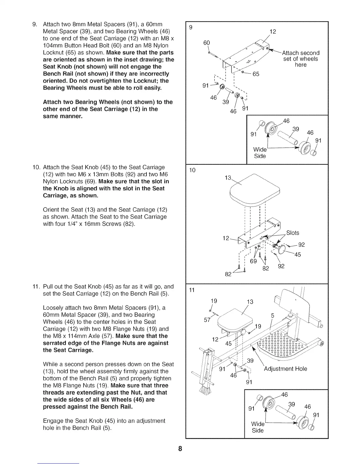 set the Seat Carriage (12) on the Bench Rail (5).