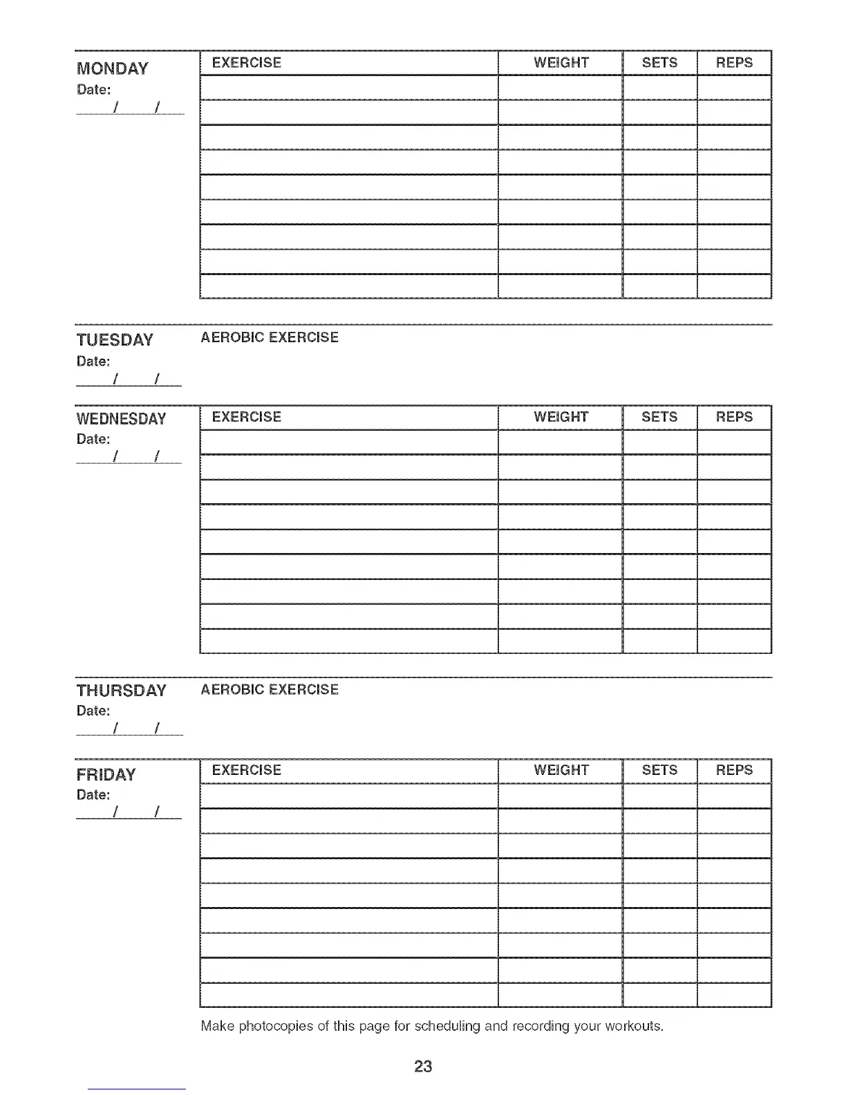 FRUDAY EXERCISE WEIGHT SETS REPS