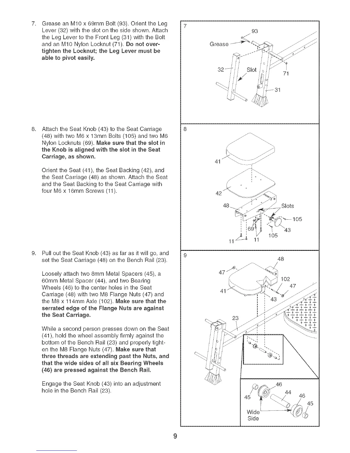 set the Seat Carriage (48) on the Bench Rail (23),