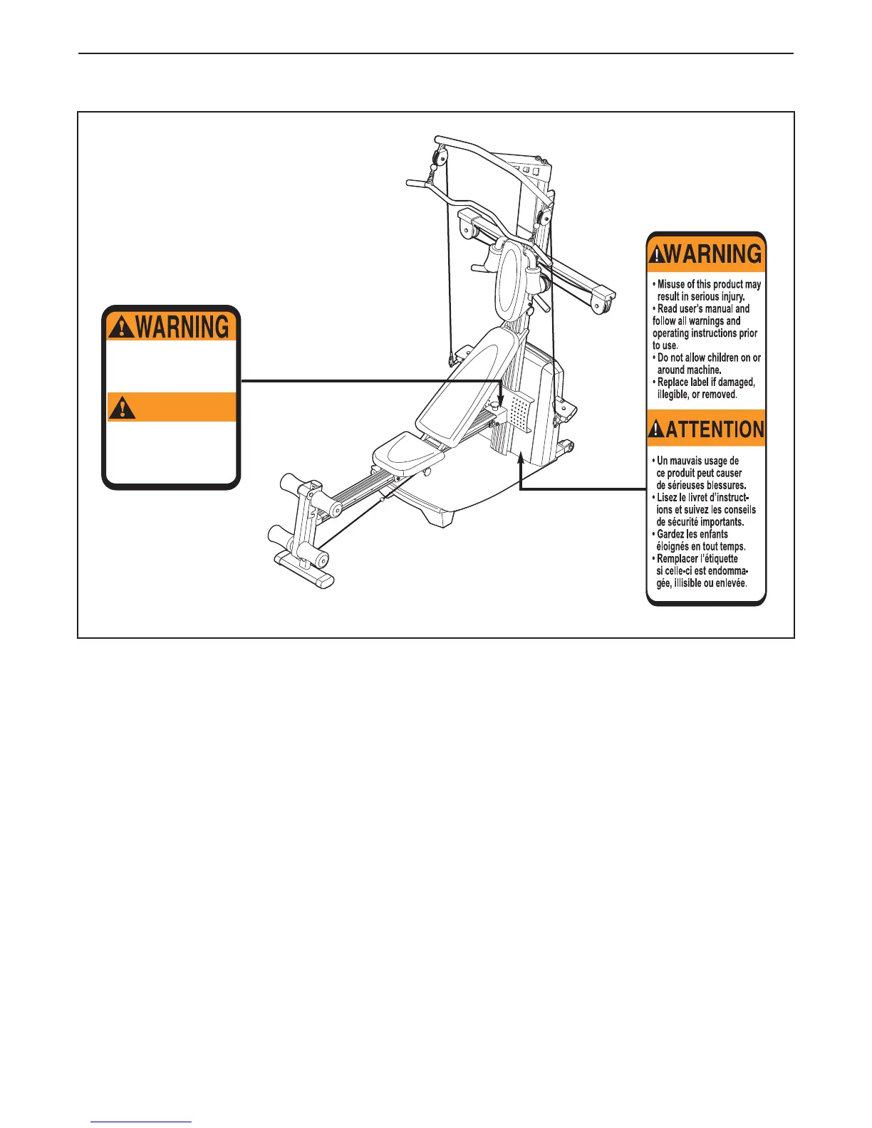 Weider Platinum XP800 - Safety Decal Placement; Decal Location and Replacement Procedure