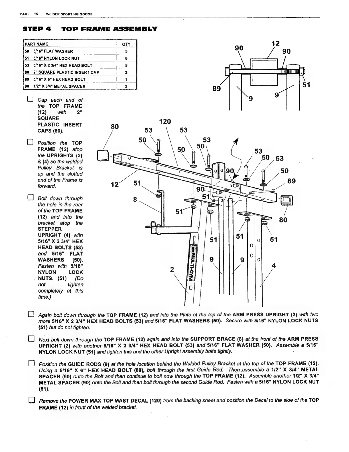 Weider Powermax 70072 - Top Frame Assembly