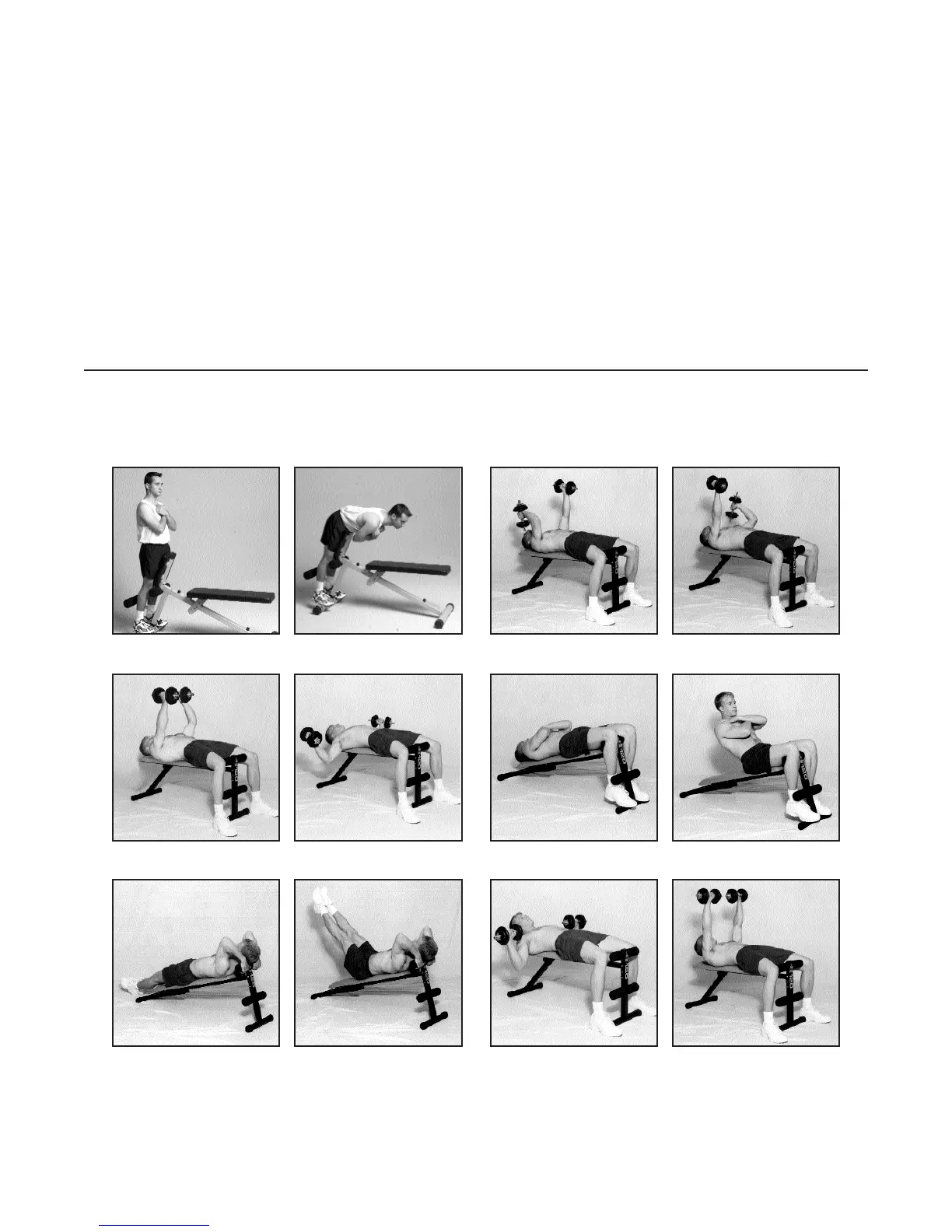 These pictures show a variety of exercises that can be performed with your weight bench. Note: Your bench