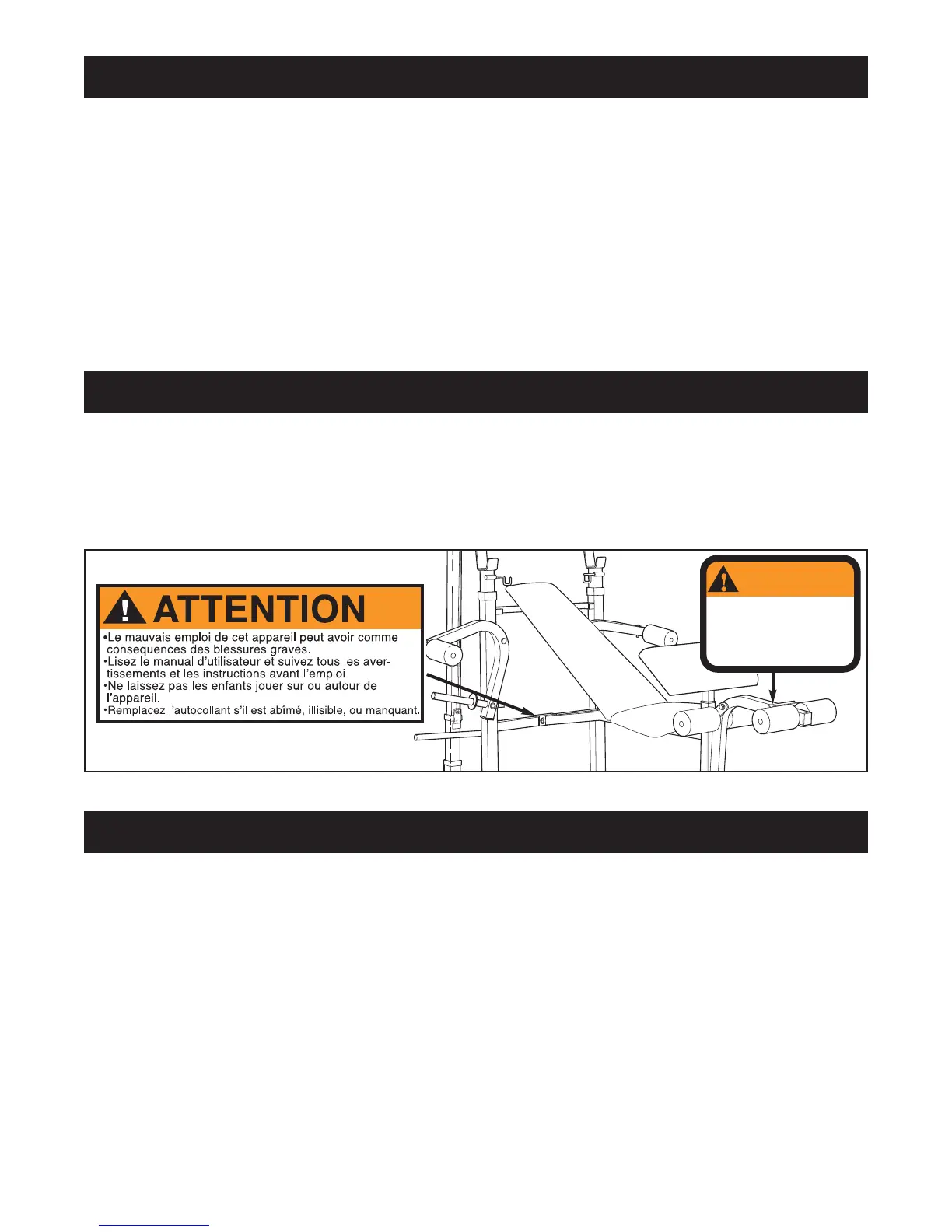 L’autocollant illustré à droite à été placé sur le banc. Si l'autocollant est manquant ou illisible, veuillez com-
