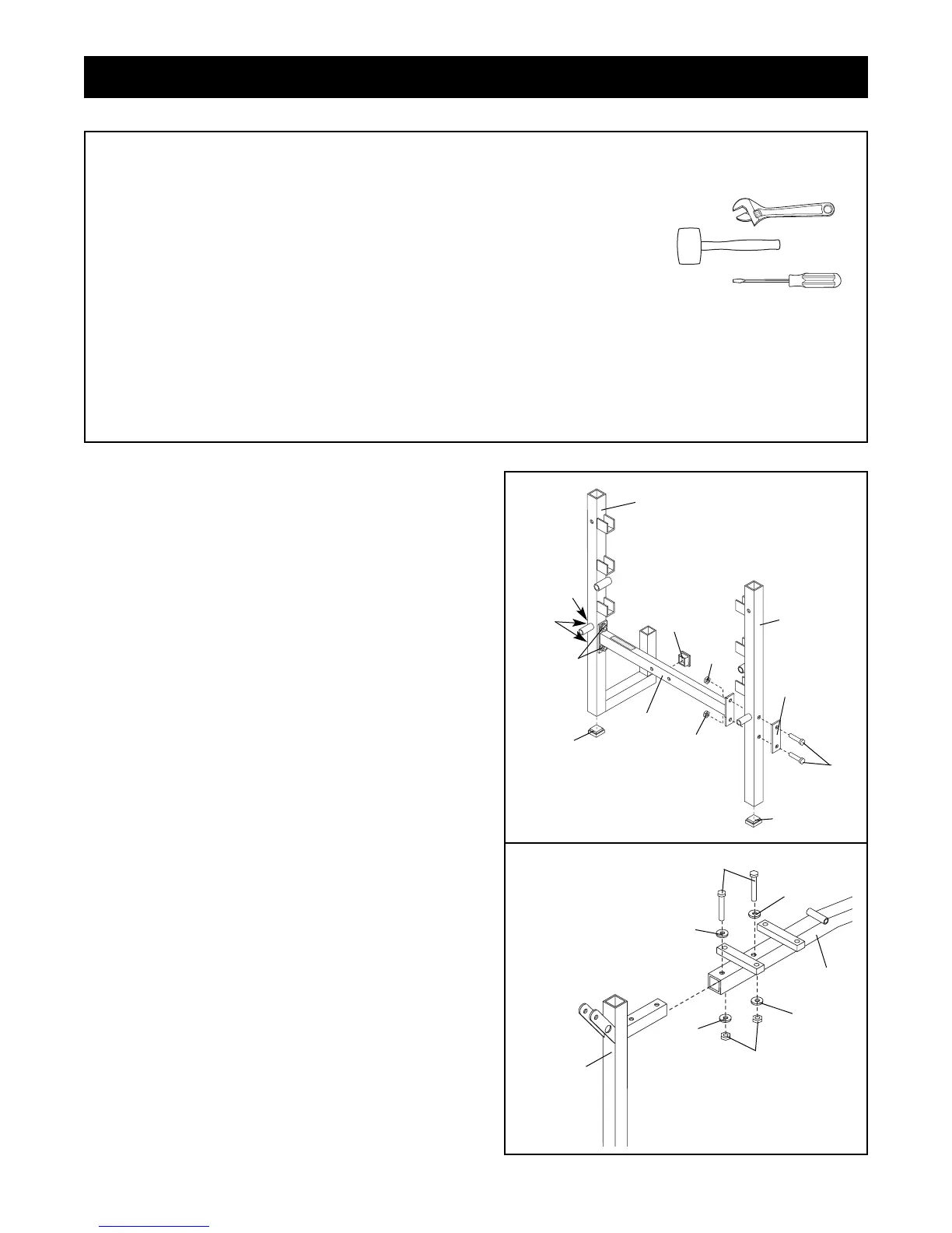 • As you assemble the weight bench, be sure that