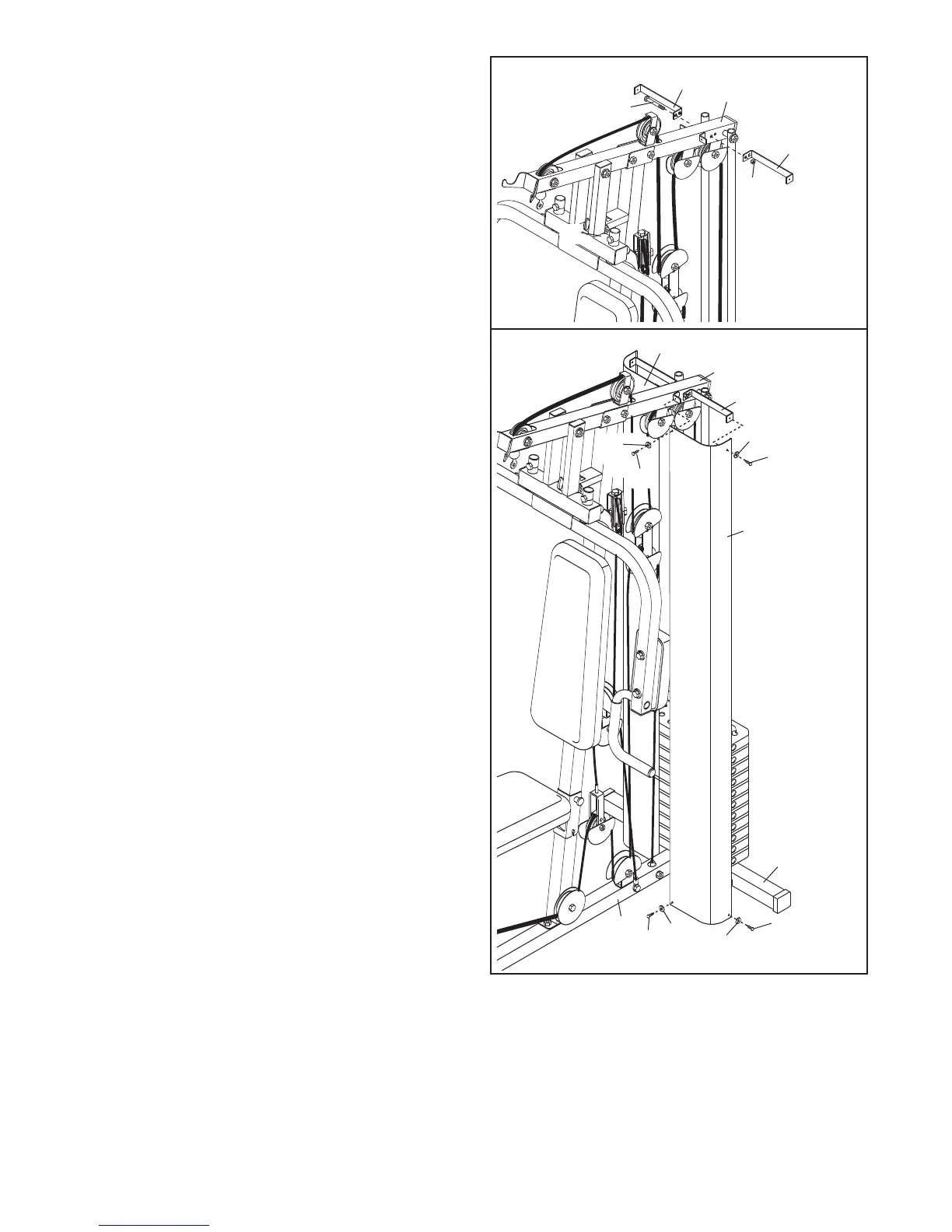 reil de musculation, tirez chacun des câbles plusieurs fois pour vous assurer que les câbles soient bien
