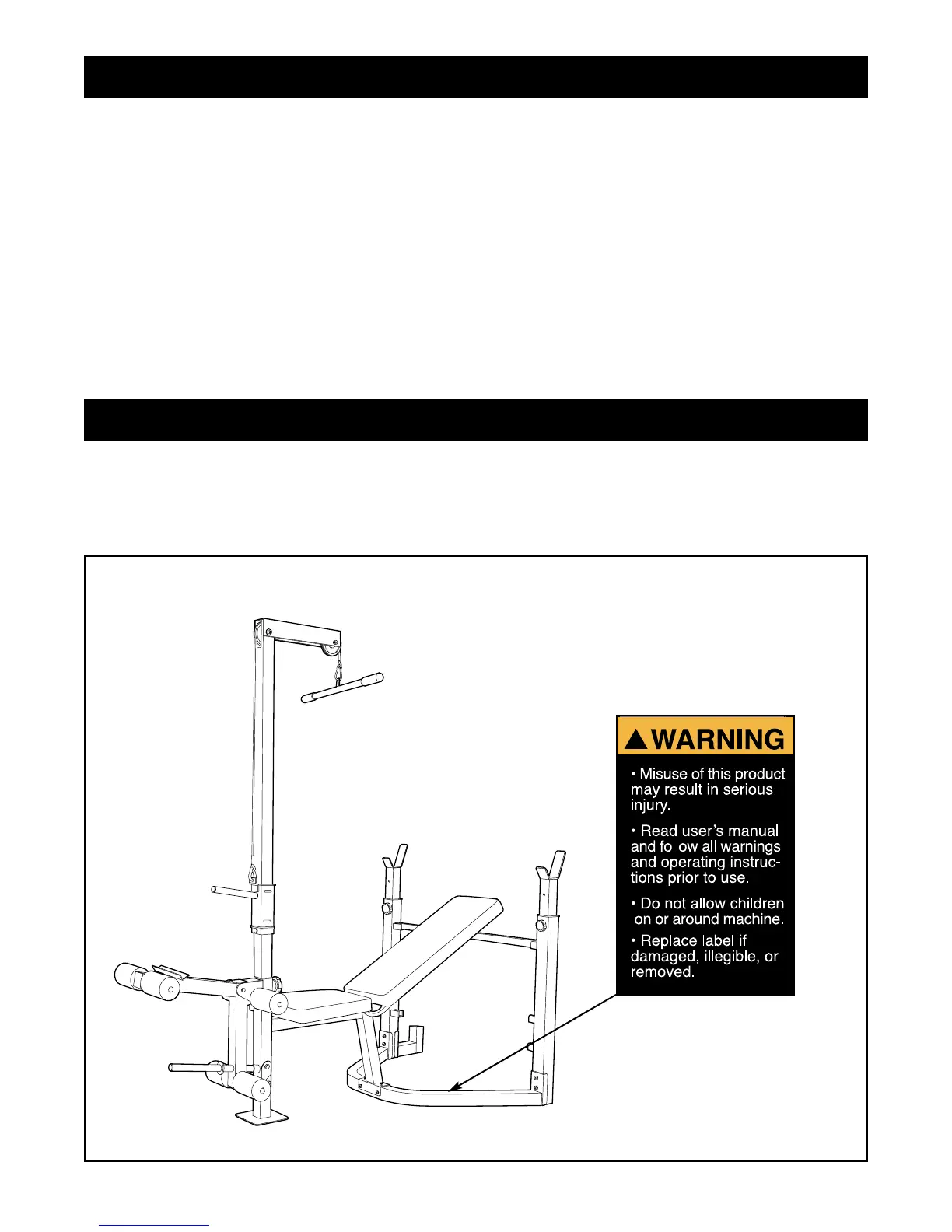 The decal shown below has been placed on the weight bench. If the decal is missing, or if it is not legi-