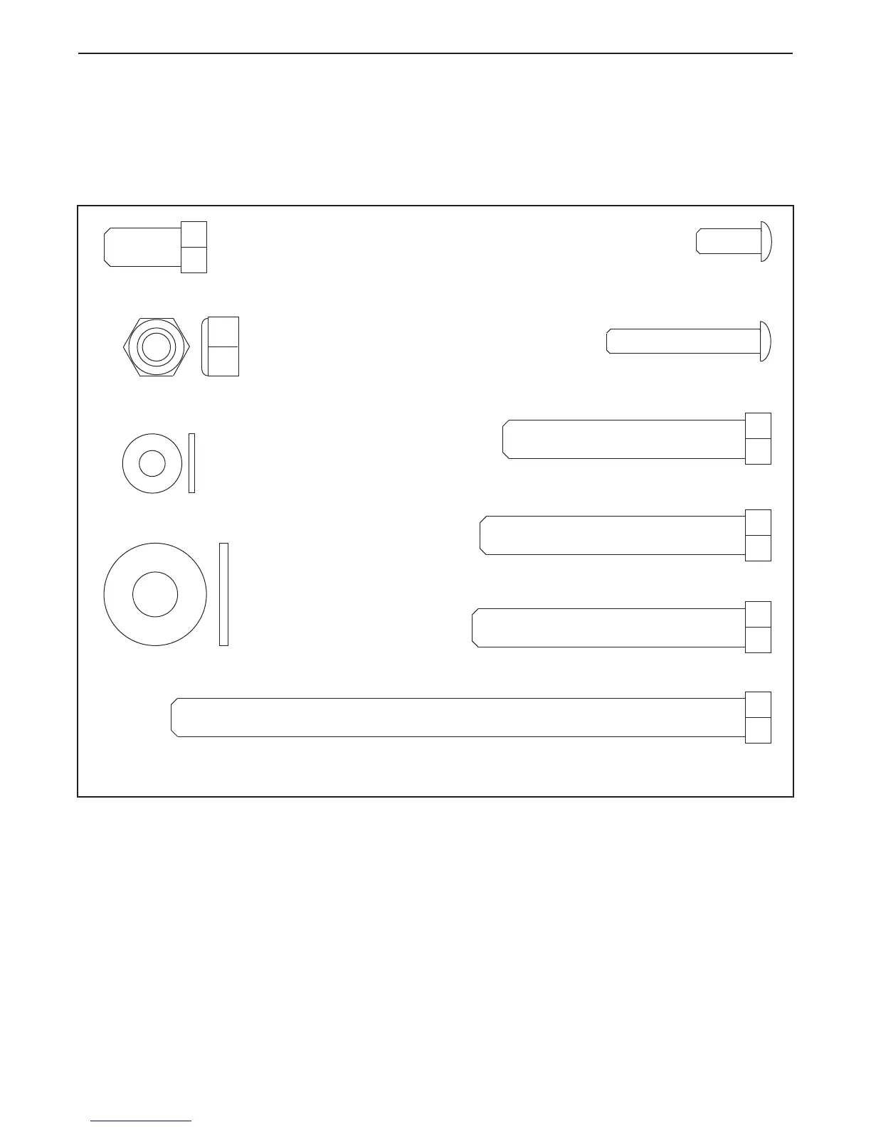 This chart is provided to help you identify the small parts used in assembly. The number in parenthesis below
