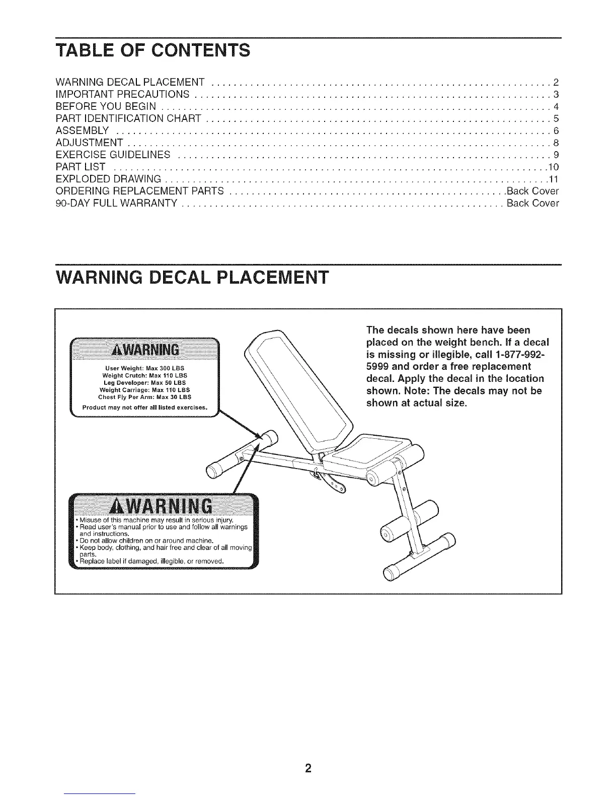 WARNING DECAL PLACEMENT ............................................................. 2