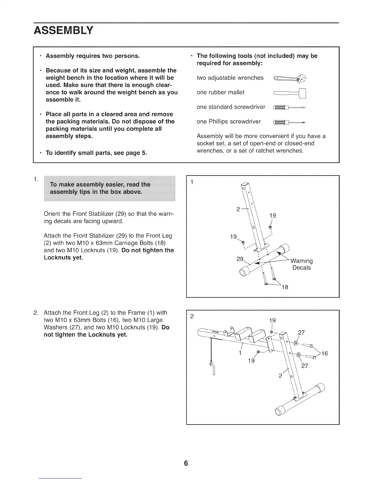 Washers (27), and two M10 Locknuts (19). Do