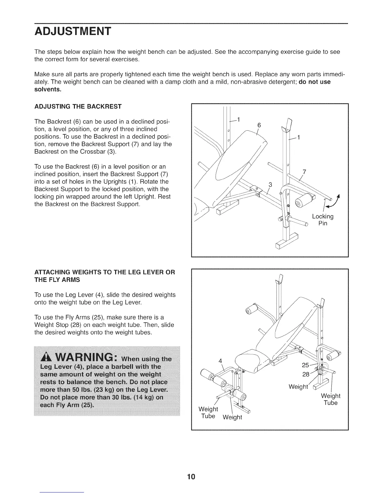 The steps below explain how the weight bench can be adjusted. See the accompanying exercise guide to see