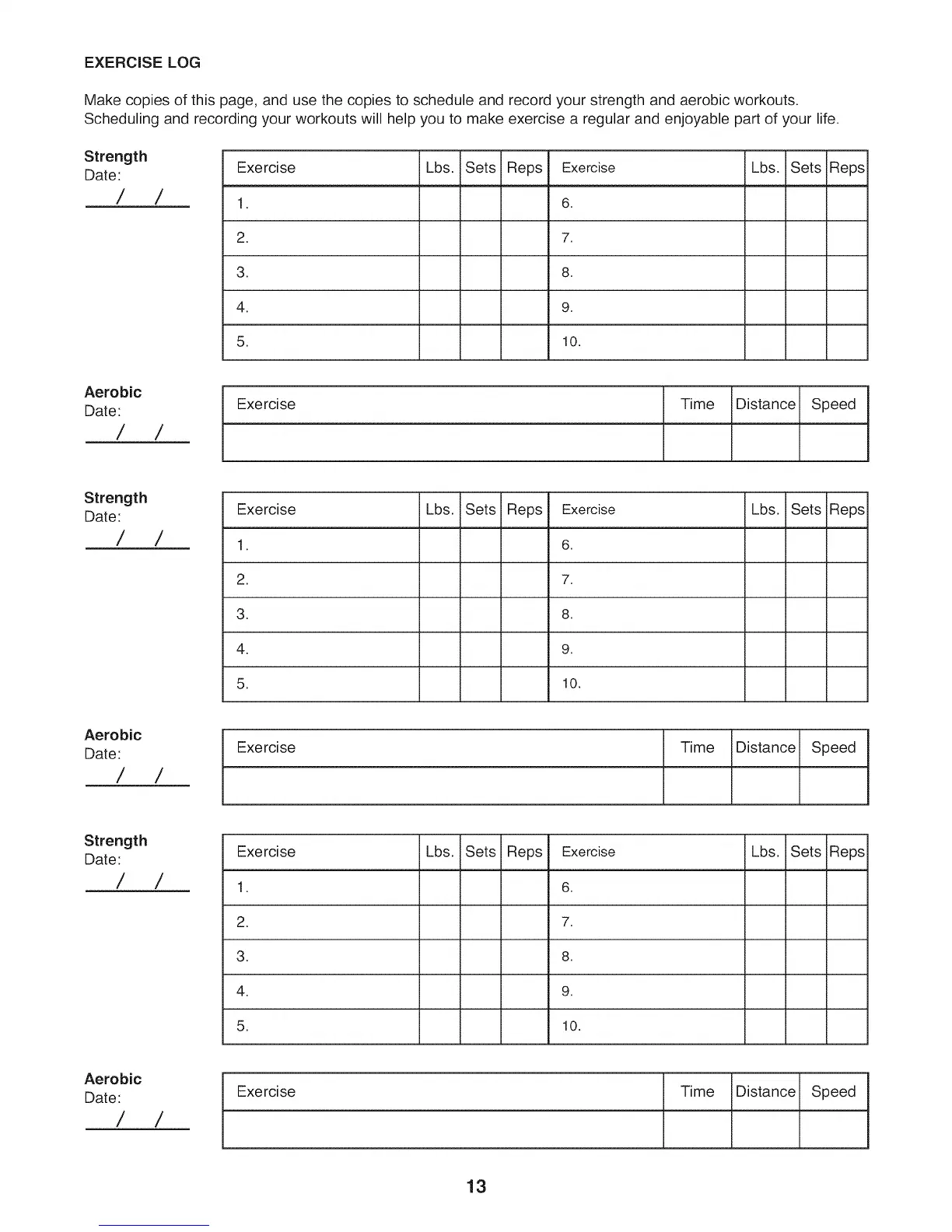 Make copies of this page, and use the copies to schedule and record your strength and aerobic workouts.