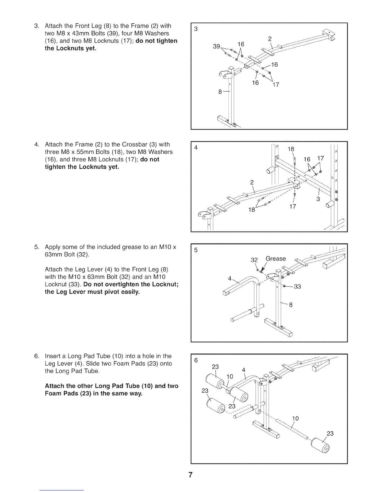 Leg Lever (4). Slide two Foam Pads (23) onto