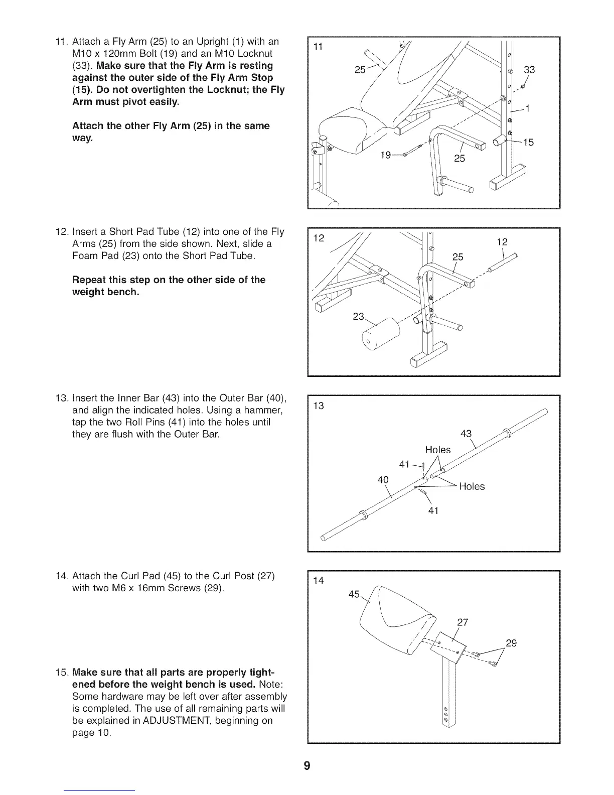 14. Attach the Curl Pad (45) to the Curl Post (27)