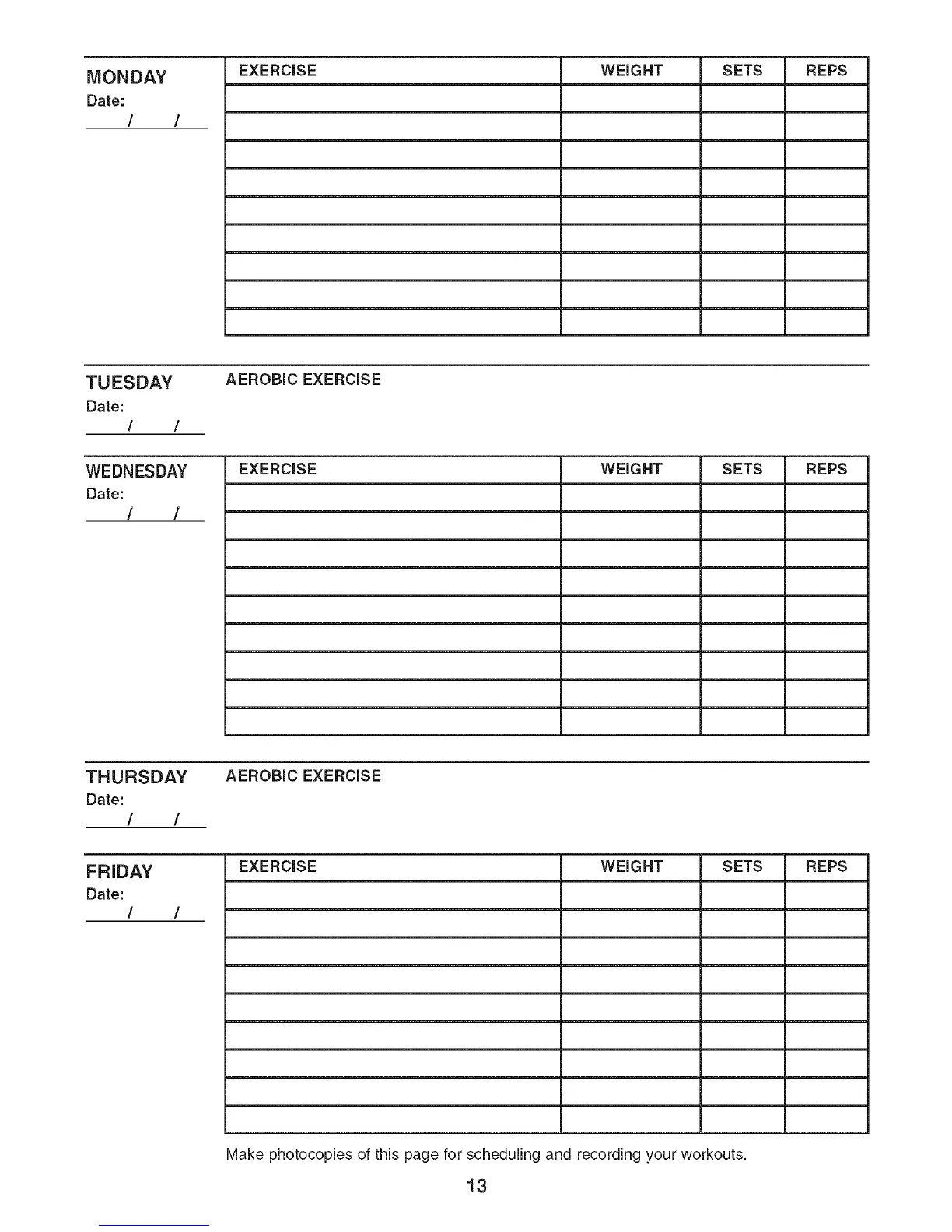Make photocopies of this page for scheduling and recording your workouts.