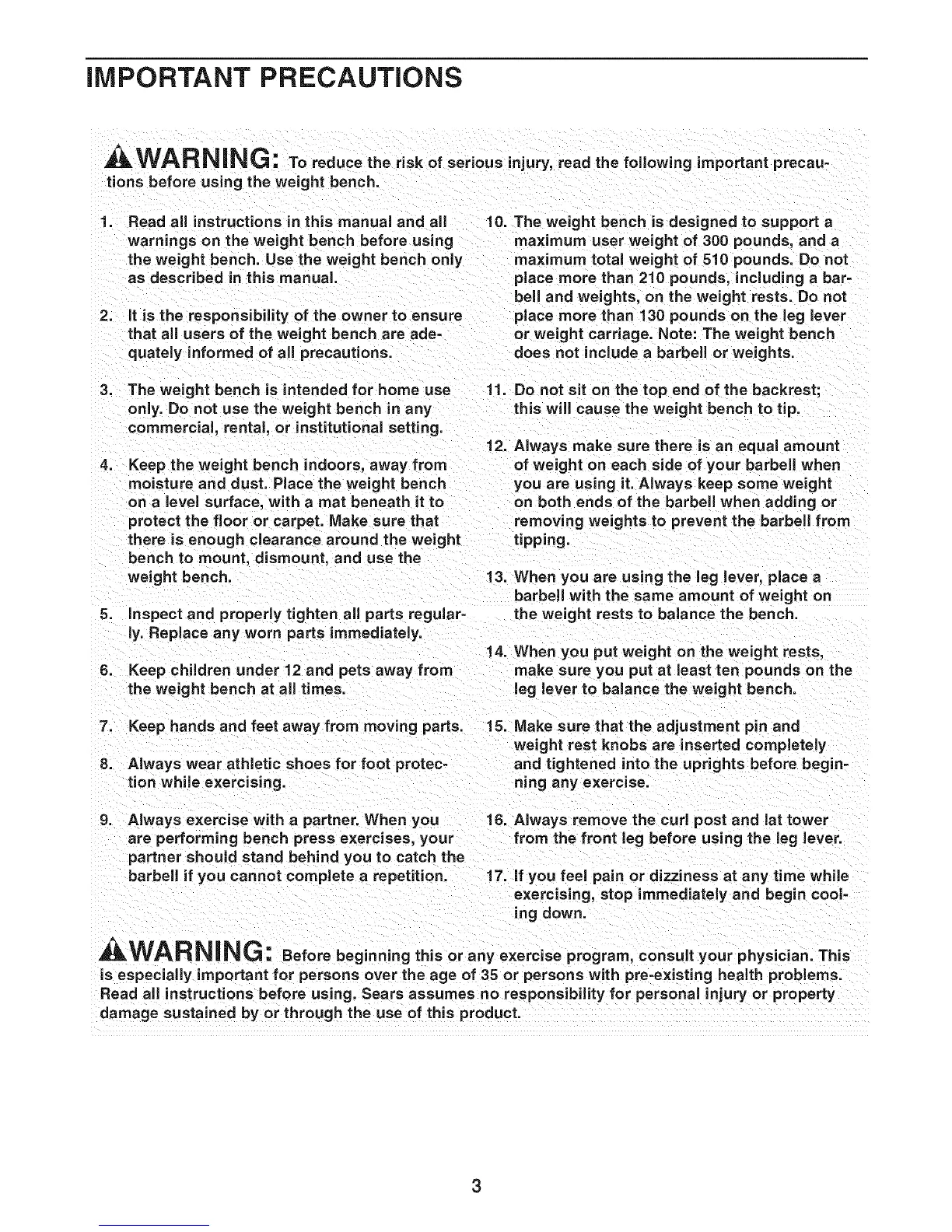 Read all instructions before using. Sears assumes no responsibility for personal injury or property
