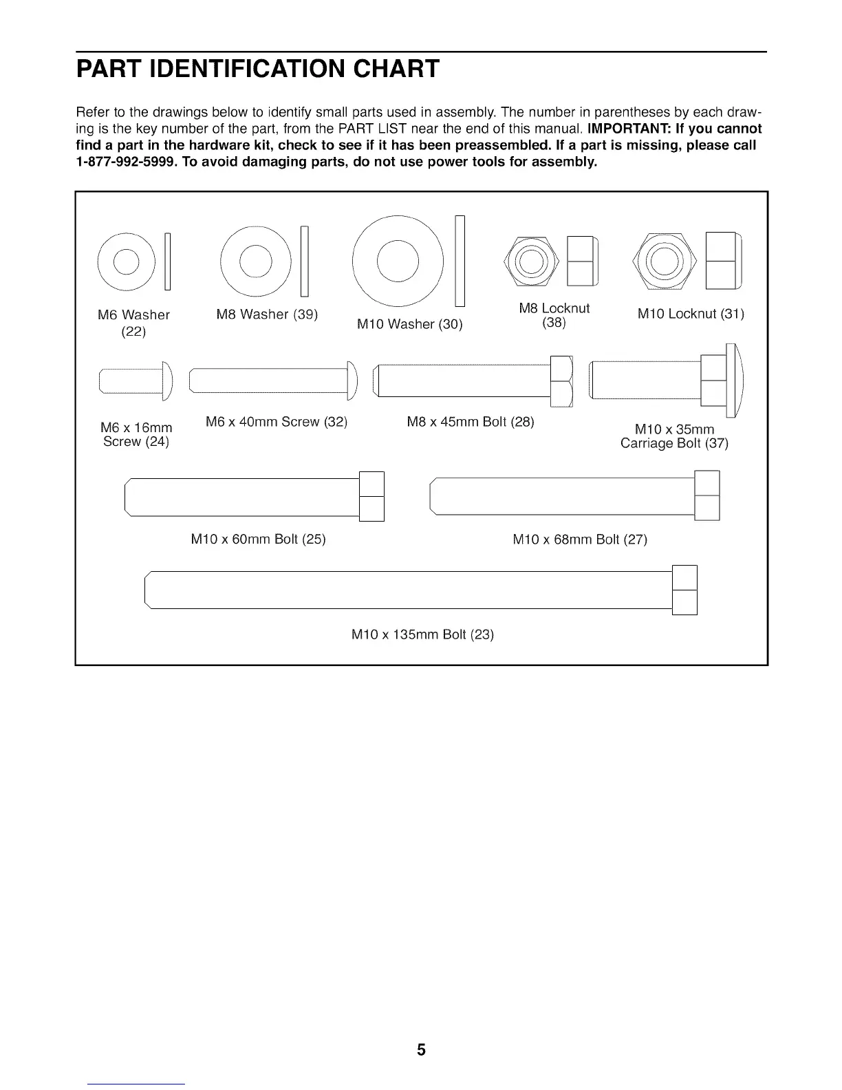 find a part in the hardware kit, check to see if it has been preassembled. If a part is missing, please call