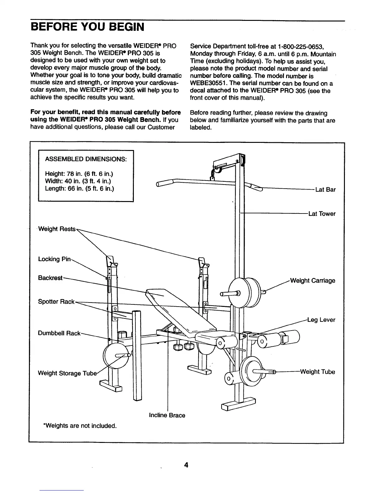 Weider Pro 305 - Before You Begin Setup