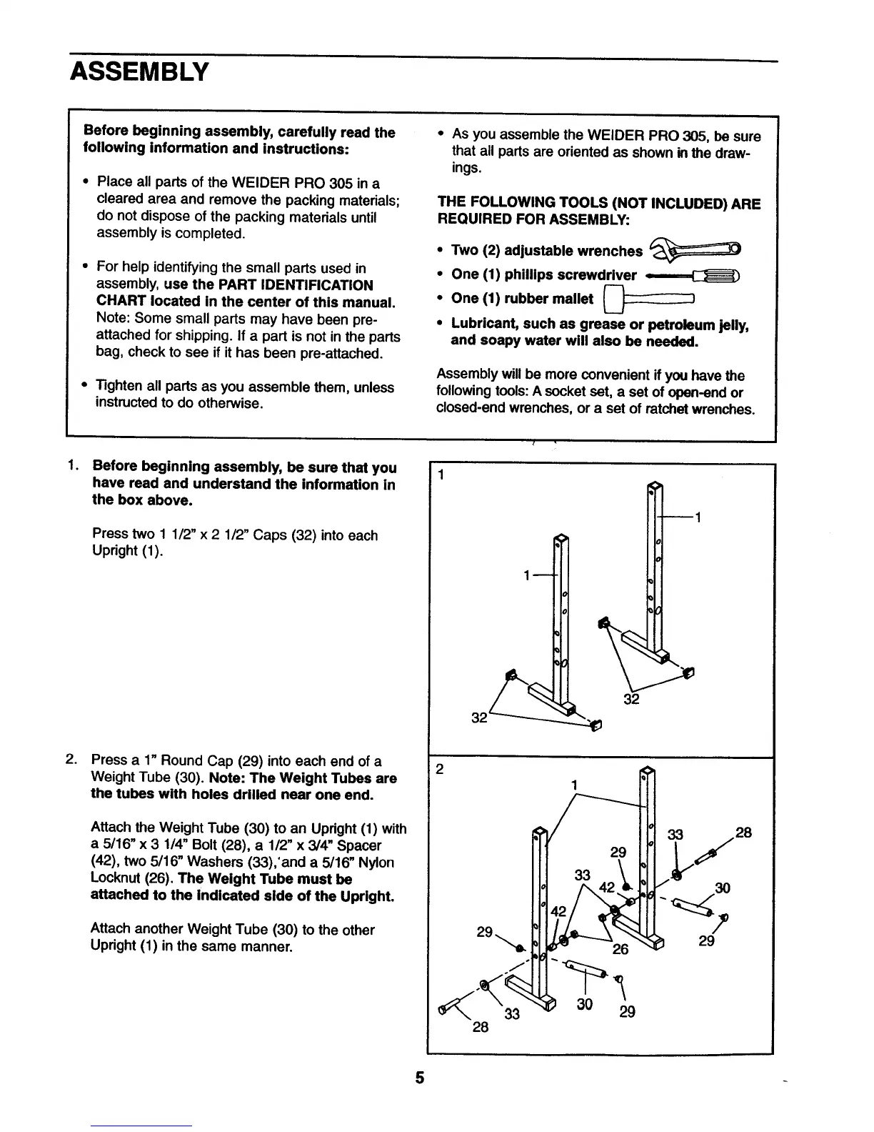 Weider Pro 305 - Assembly Instructions; Required Tools for Assembly