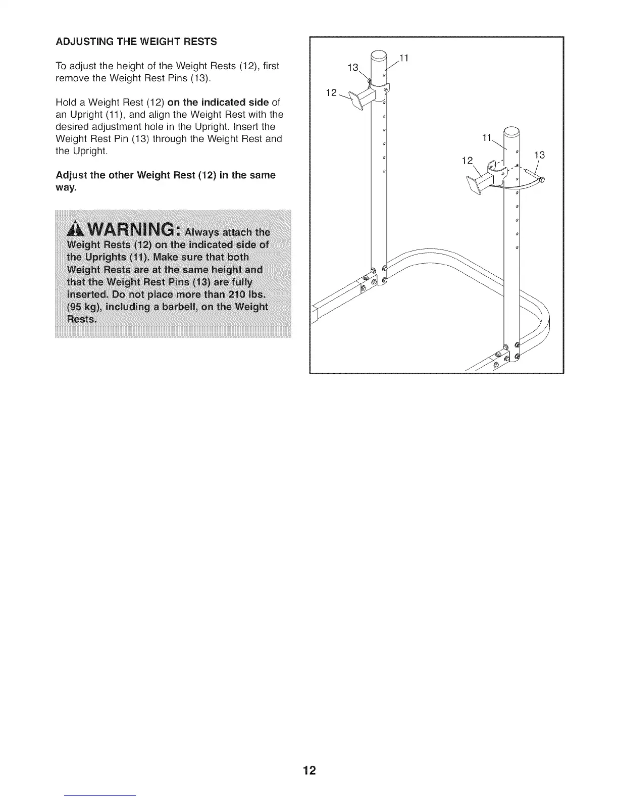 To adjust the height of the Weight Rests (12), first
