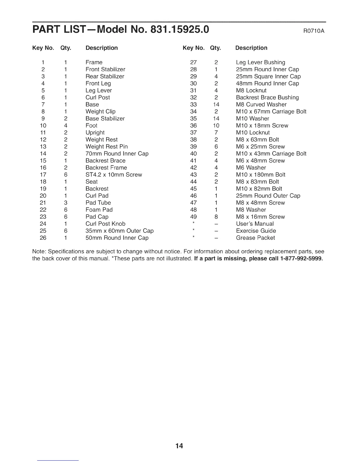 the back cover of this manual. *These parts are not illustrated, if a part is missing, please call 1-877-992-5999.