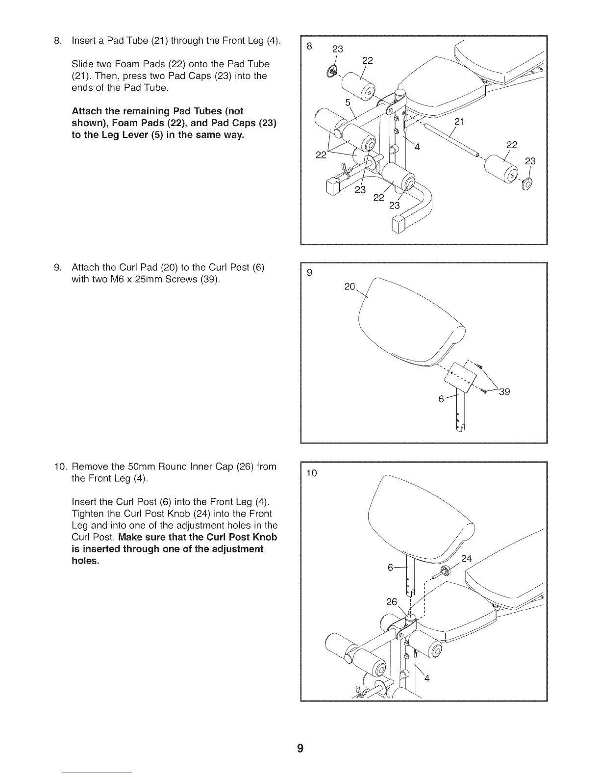 9. Attach the Curl Pad (20) to the Curl Post (6)