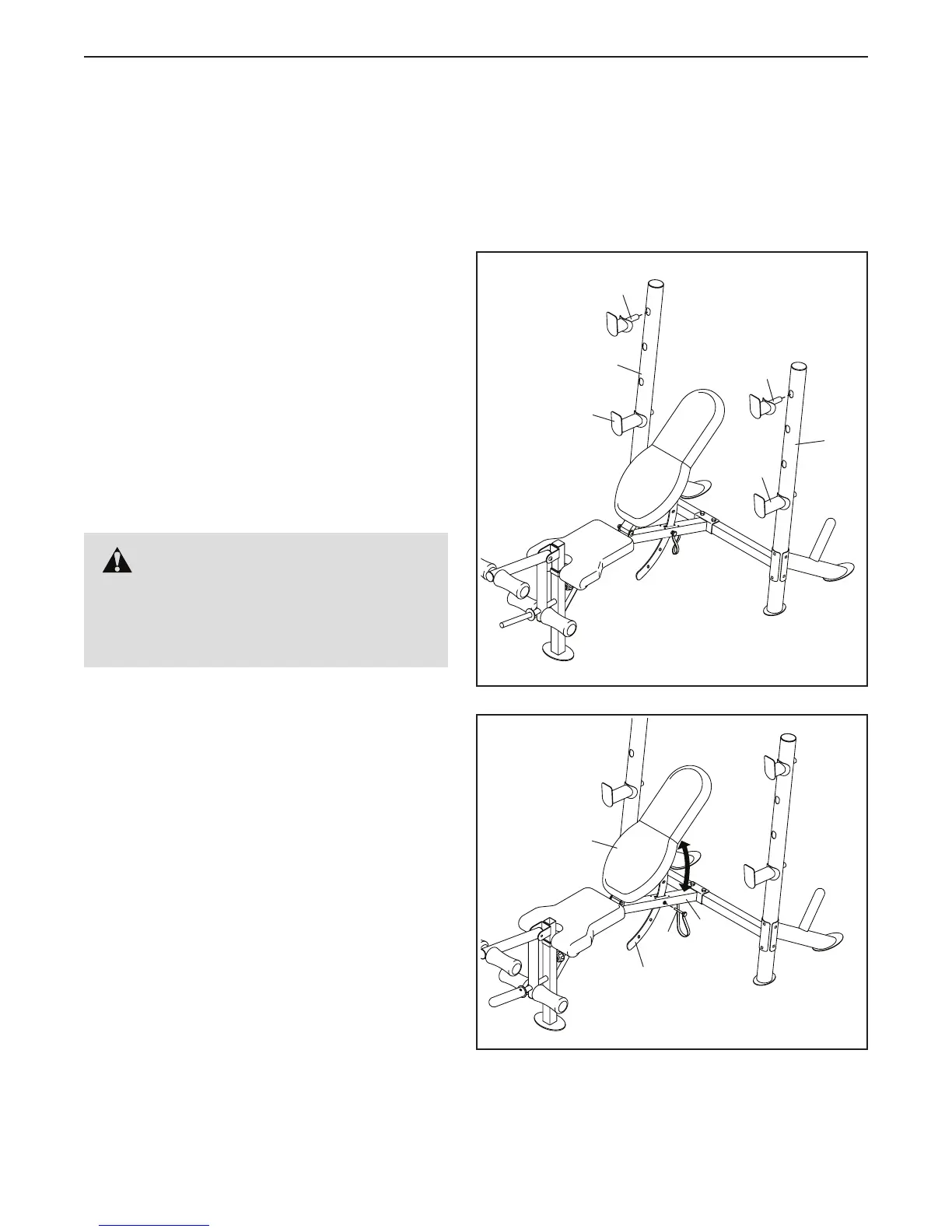 The steps below explain how the weight bench can be adjusted. See the accompanying exercise guide to see the