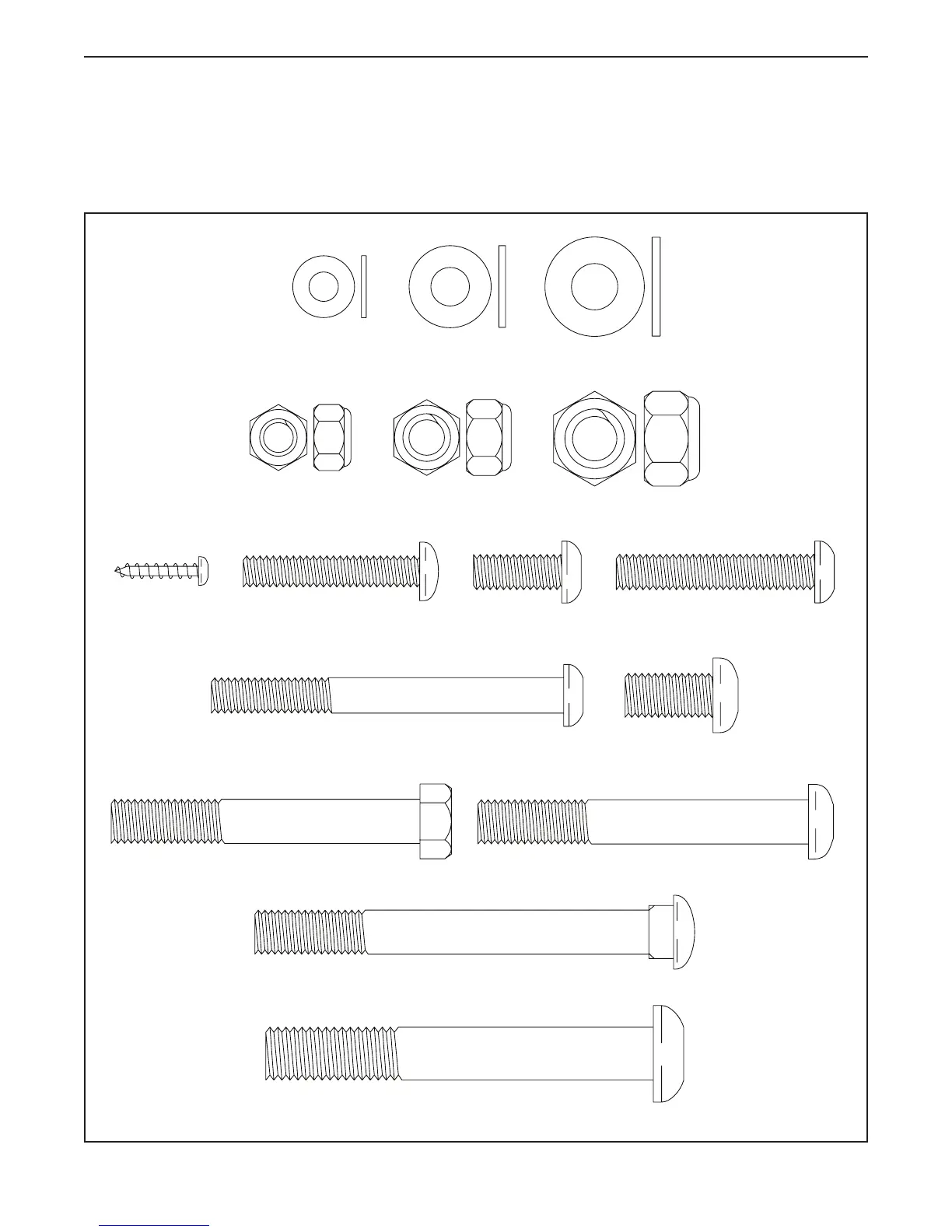 the hardware kit, check to see if it has been preassembled. Extra hardware may be included. If a part is