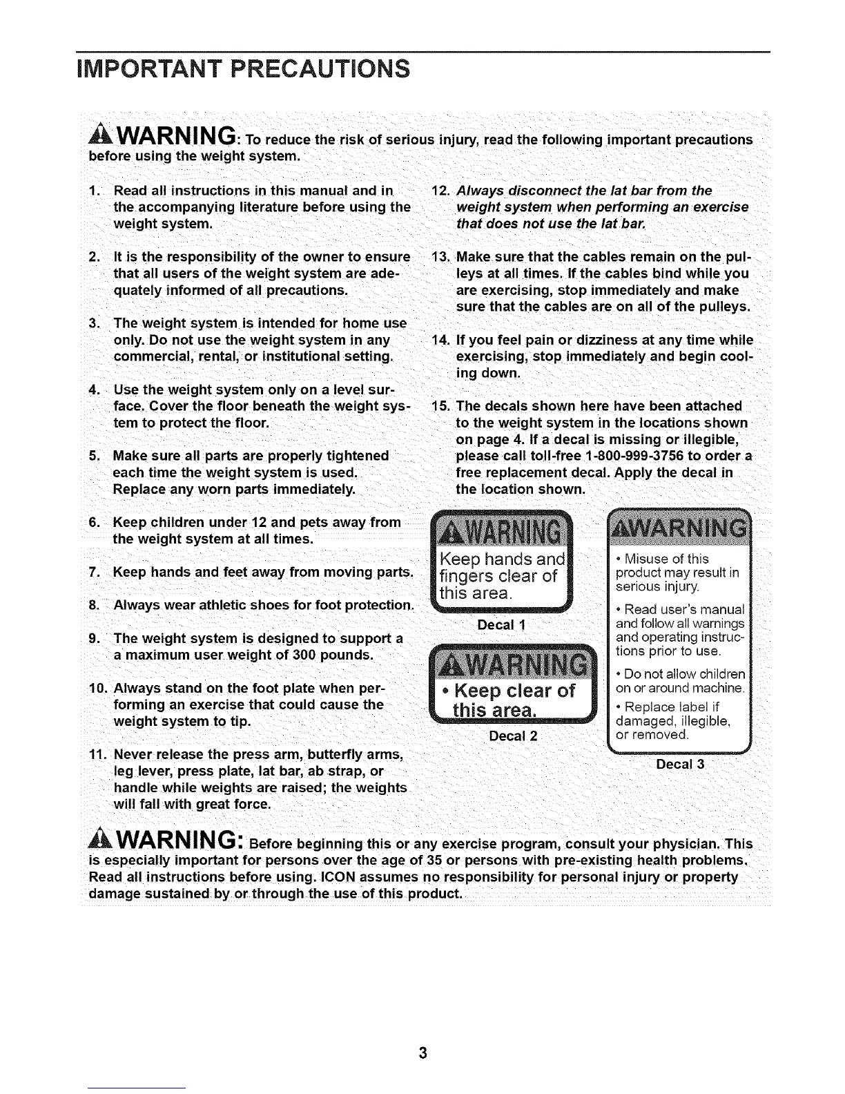 Read all instructions before using. ICON assumes no responsibility for personal injury or property
