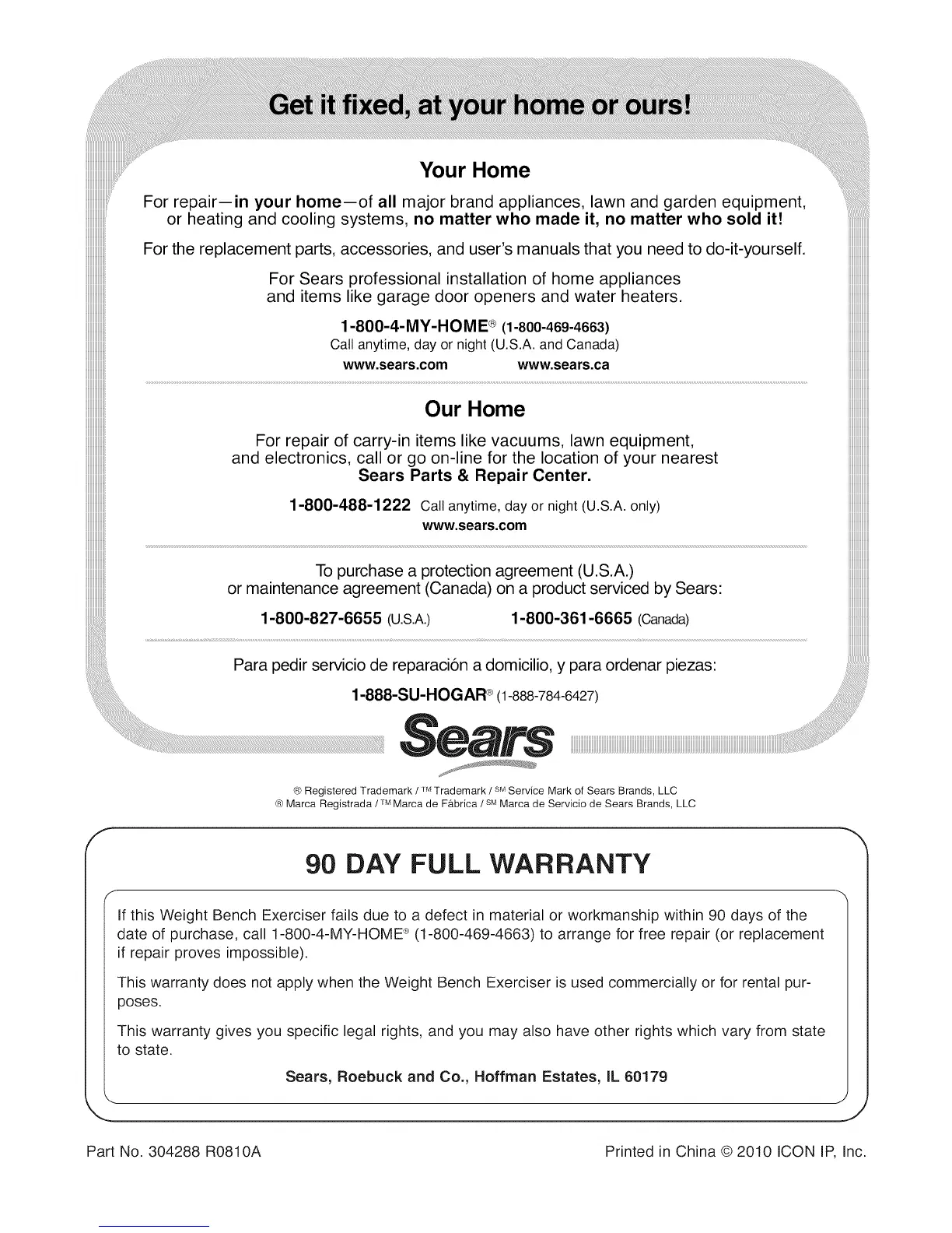 Part No. 304288 R0810A Printed in China © 2010 ICON IP, Inc.