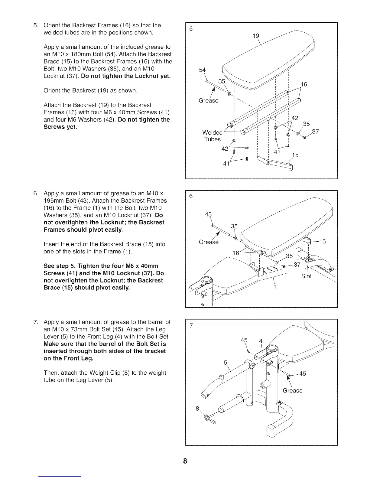 not overtighten the Locknut; the Backrest