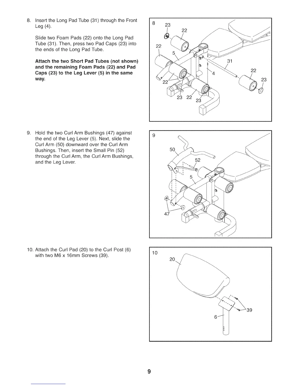 10. Attach the Curl Pad (20) to the Curl Post (6)