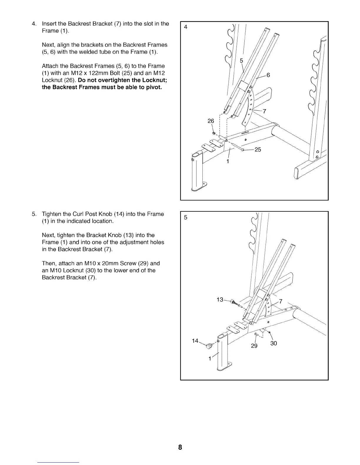 Attach the Backrest Frames (5, 6) to the Frame