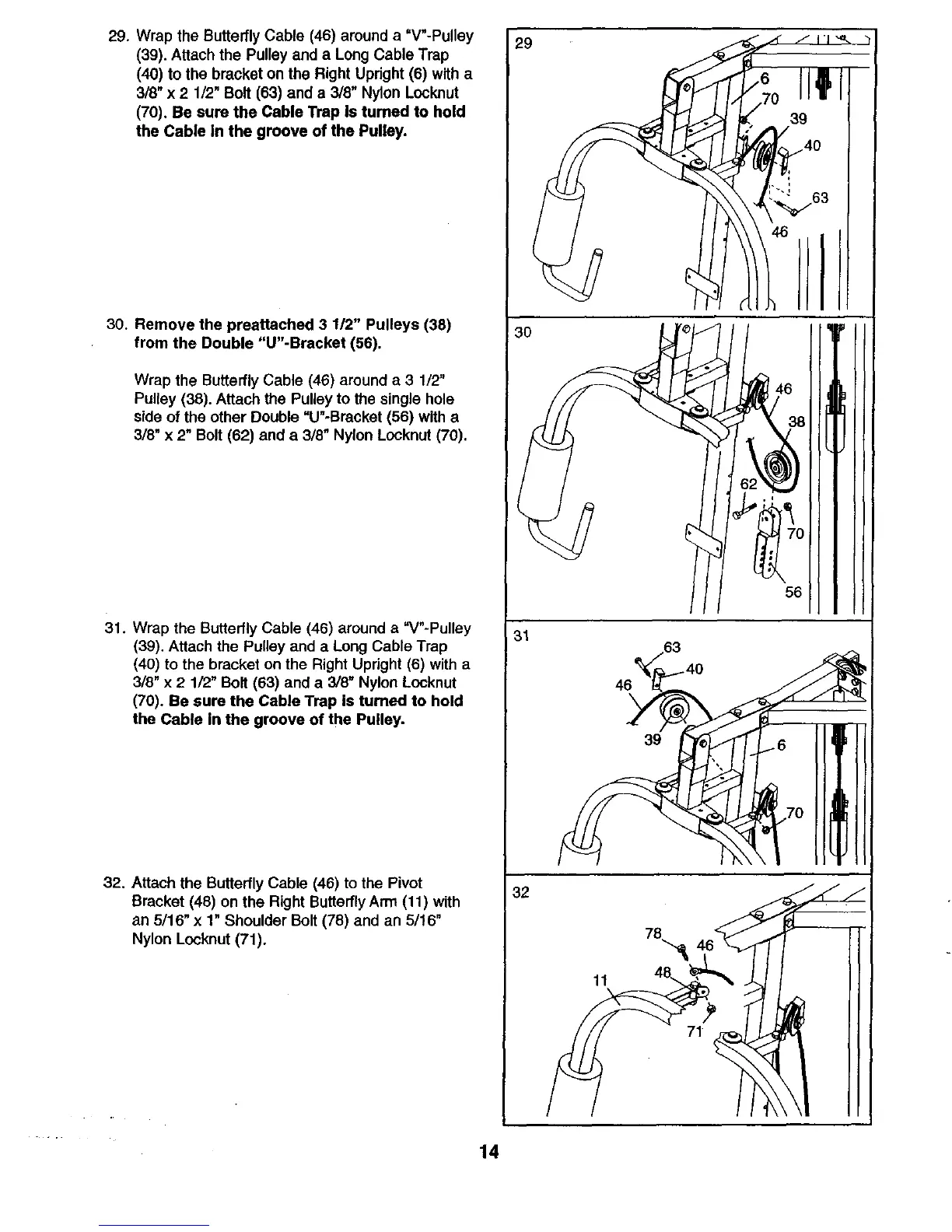 31. Wrap the Butterfly Cable (46) around a "V"-Pulley