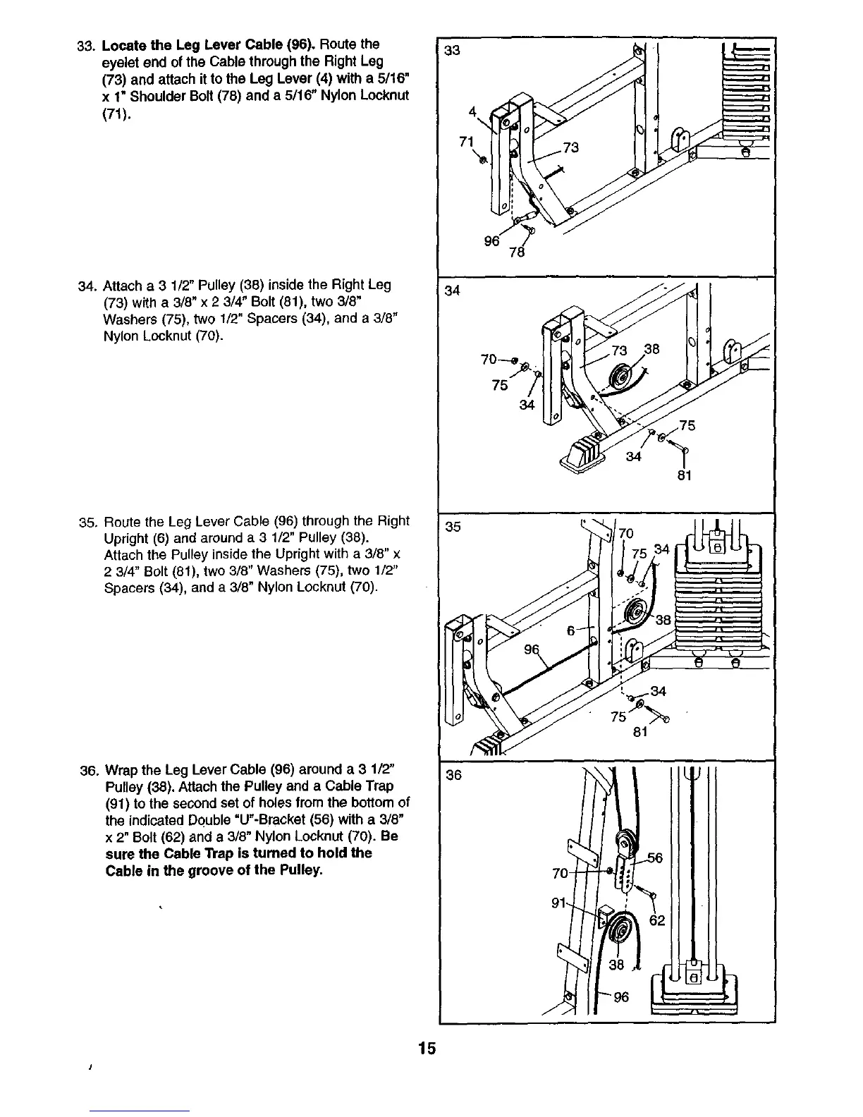 34. Attach a 3 1/2" Pulley (36) inside the Right Leg