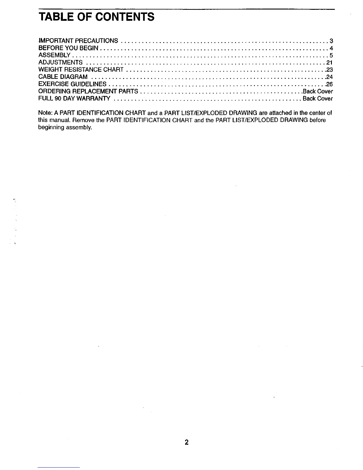 WEIGHT RESISTANCE CHART ........................................................... 23