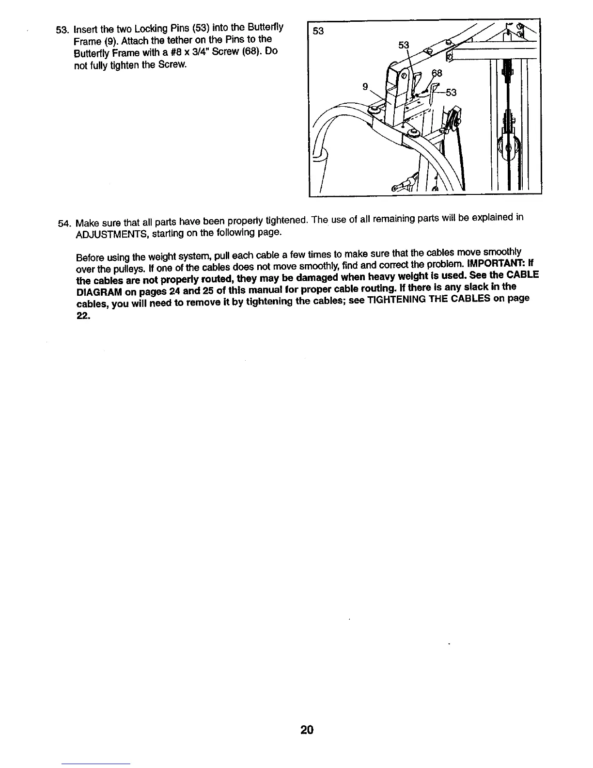 54. Make sure that all parts have been properly tightened. The use of all remaining parts will be explained in