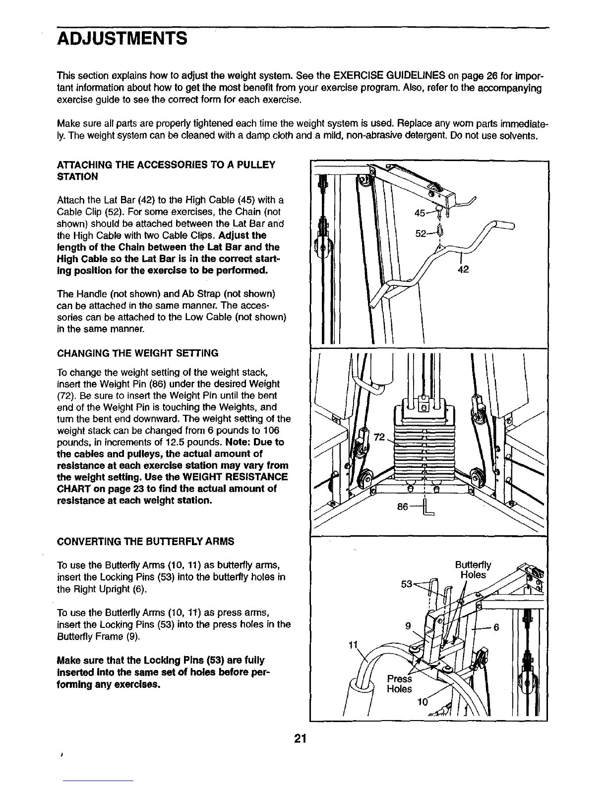 This section explains how to adjust the weight system. See the EXERCISE GUIDELINES on page 26 for impor-
