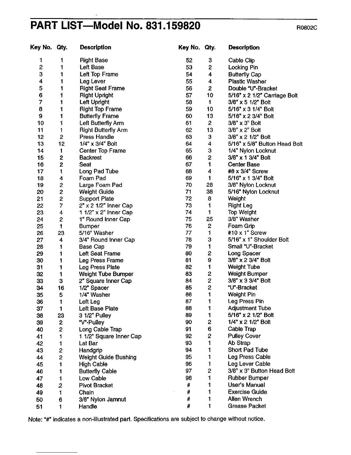 PART LIST--Model No. 831.159820 R08O2C